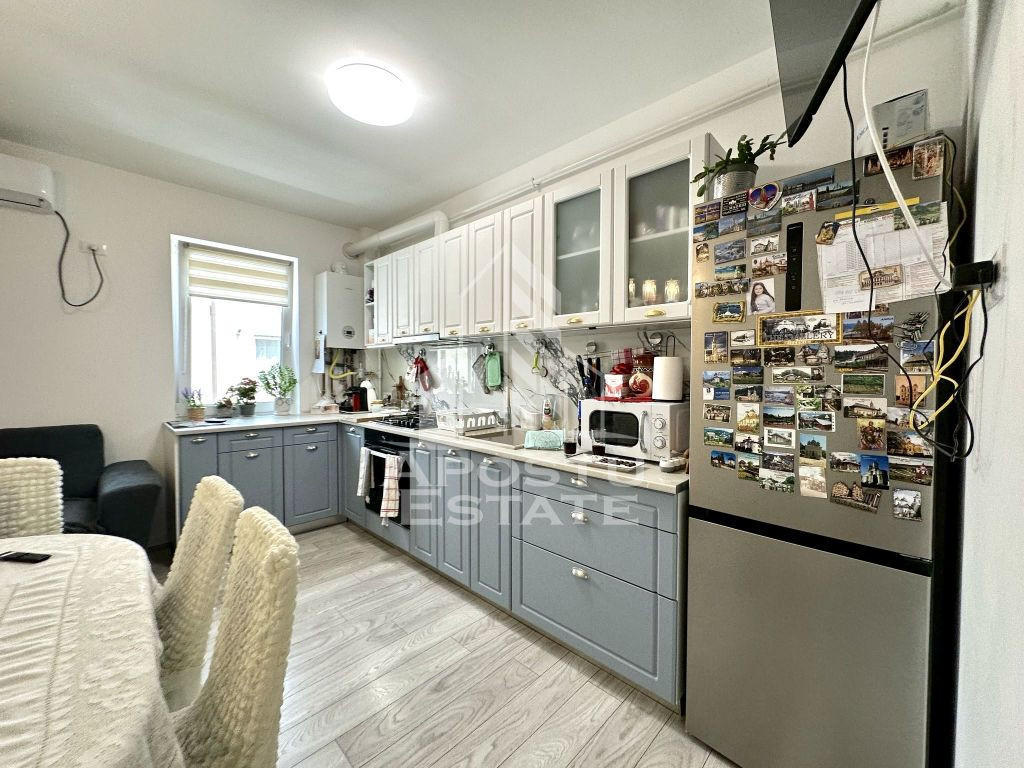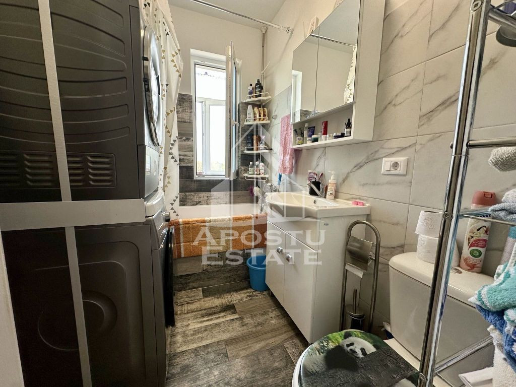 APOSTU ESTATE are placerea de a va oferi spre vanzare un apartament cu 3 camere, complet mobilat si utilat, localizat in Giroc. Apartamentul este situat la etajul 2 si are o suprafata utila de 57 mp. - Hol acces - Living open space cu bucataria - Dormitor matrimonial cu dressing si acces la balcon - Dormitor cu acces la balcon - Baie cu geam - Balcon inchis Confortul termic este realizat prin intermediul incalzirii in pardoseala si a aparatului de aer conditionat. Acceptam orice tip de credit bancar. Oferim consultanta si solutii financiare prin colaboratorii nostri. Va asteptam cu drag la o vizionare chiar astazi! ID intern: CP2497451.