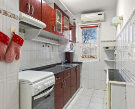 Bucătărie închisă, complet mobilată și utilată (frigider, aragaz, hotă, mașină de spălat rufe)