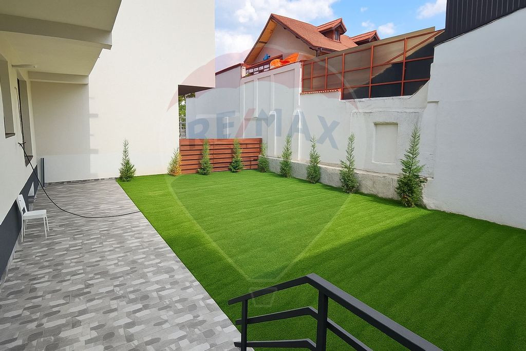 Va propunem spre vanzare in un apartament cochet cu 3 camere semi-decomandat aflat la parterul unui bloc butique cu doua etaje, cu o terasa si curte generoase de 150 mp. Apartamentul beneficiaza de gresie, faianta, parchet, termopan, centrala proprie. Bucataria este inchisa de 8.3 mp. Contorizare individuala pentru toate utilitatile (costuri mici pentru intretinere). Constructie pe cadru de beton, compartimentara interior/exterior din caramida porotherm cu izolatie la exterior. Terasa si curtea interioara de 150 mp aduce un plus de valoare consistent apartamentului, fiind un spatiu care poate fi personalizat dupa dorintele proprietarilor. Sunt disponibie parcari si boxe la subsolul imobilului care pot fi achizitionate suplimentar de pretul apartamentului. Acte de proprietate la zi, disponibili spre vanzare si prin credit bancar.