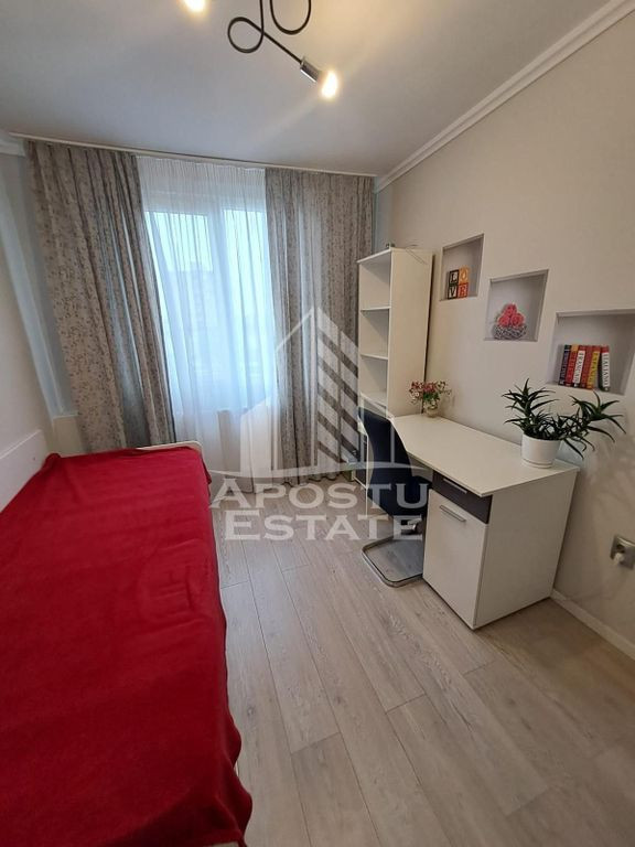 APOSTU ESTATE va propune spre inchiriere un apartament modern cu 3 camere, complet mobilat si utilat, situat in zona Circumvalatiunii, ideal pentru cupluri sau profesionisti care cauta confort si acces rapid catre principalele puncte de interes ale orasului. • Suprafata utila: 55 mp • Etaj: 5/10 • Bloc cu lift • Compartimentare decomandata: – Hol de acces – Living – 2 dormitoare – Baie cu cabina de dus – Balcon inchis Dotari si facilitati: • Bucatarie complet mobilata si utilata • Masina de spalat rufe • Aer conditionat • Centrala proprie cu incalzire prin calorifere • Apartament complet mobilat si utilat, gata de mutare Localizare excelenta: Bloc cu lift si interfon, situat in zona Circumvalatiunii, cu acces facil la mijloace de transport, supermarketuri, farmacii, scoli, gradinite si parcuri. Pret chirie: [535€] Garantie: o luna Disponibil imediat ID intern: CP2783927