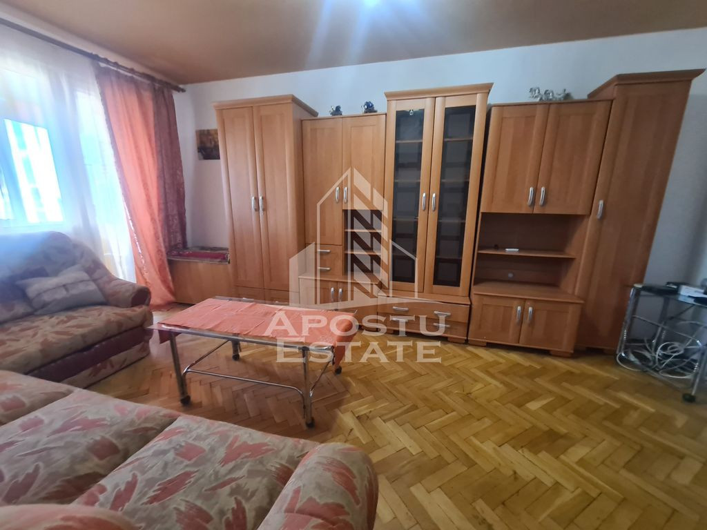 APOSTU ESTATE va propune spre inchiriere un apartament spatios cu 3 camere, decomandat, in zona Complexului studentesc. Apartamentul dispune de suprafata de 70 mp utili si un balcon generos. Este situat la etajul 8 al unui bloc izolat de 10 etaje. Vecinati: - UVT - mijloace de transport în comun - magazine - AFC Compartimentare: - hol - dormitor cu pat matrimonial - dormitor secundar cu canapea extensibila - living generos cu canapea extensibila - bucatarie complet utilata si mobilata - baie cu cada și geam - debara - balcon Confortul termic este realizat prin centrala proprie prin calorifere. Disponibil din 25.06.2025 Va asteptam cu drag la o vizionare !