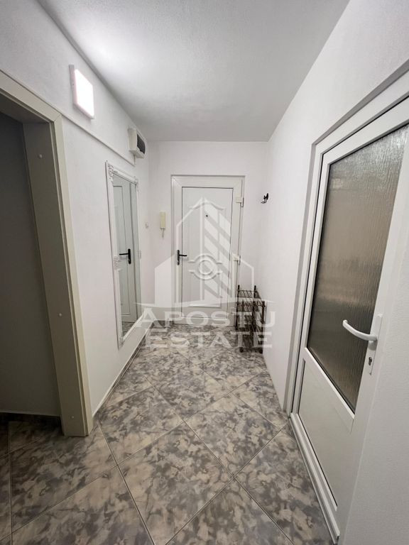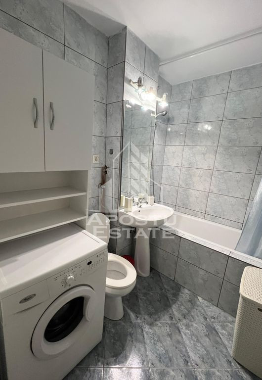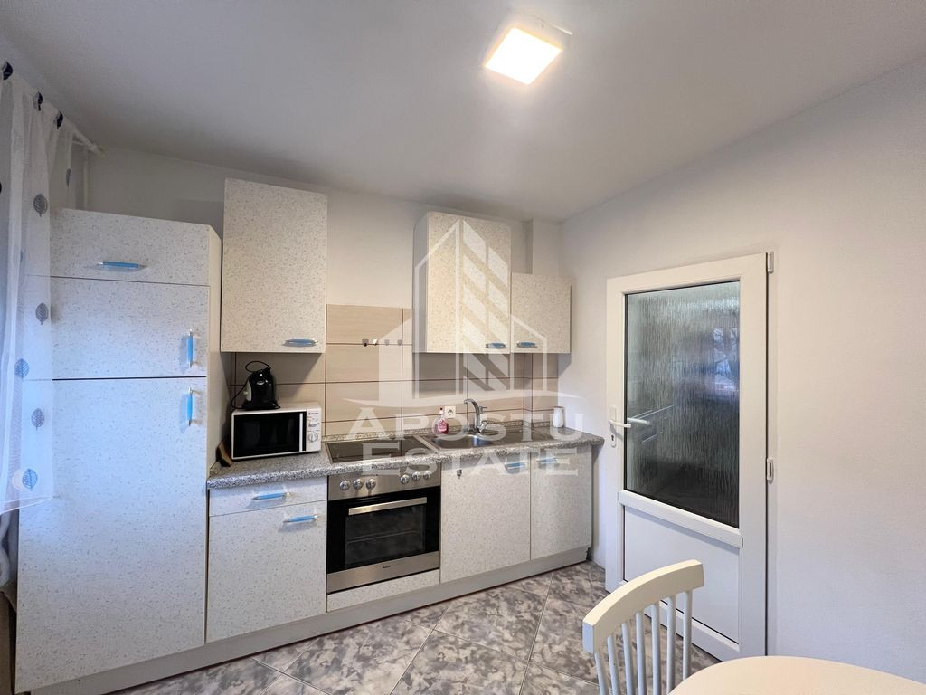 APOSTU ESTATE va propune spre inchiriere un apartament spatios, complet mobilat si utilat, situat in zona Bucovina din Timisoara. Locuinta este ideala pentru cupluri sau familii care apreciaza confortul, spatiul generos si accesul facil catre punctele cheie ale orasului. Suprafata utila: 87 mp Etaj: 2 Compartimentare decomandata: • Hol de acces • Bucatarie complet mobilata si utilata • Sufragerie cu iesire pe balcon • Dormitor cu dressing dedicat • Dormitor matrimonial cu iesire pe al doilea balcon • Baie principala cu cada • Baie de serviciu Dotari si facilitati: • Centrala termica proprie pe gaz • Incalzire prin calorifere • Aer conditionat • Masina de spalat rufe • TV Smart Localizare excelenta: Zona Bucovina, un cartier linistit si bine conectat, cu acces rapid la centrul orasului si Iulius Town. In apropiere se gasesc magazine, farmacii, cabinete medicale si statii de transport public. Zona beneficiaza si de un parc rezidential, perfect pentru plimbari si relaxare. Pret: [450€] Programeaza o vizionare! ID intern: 2612214