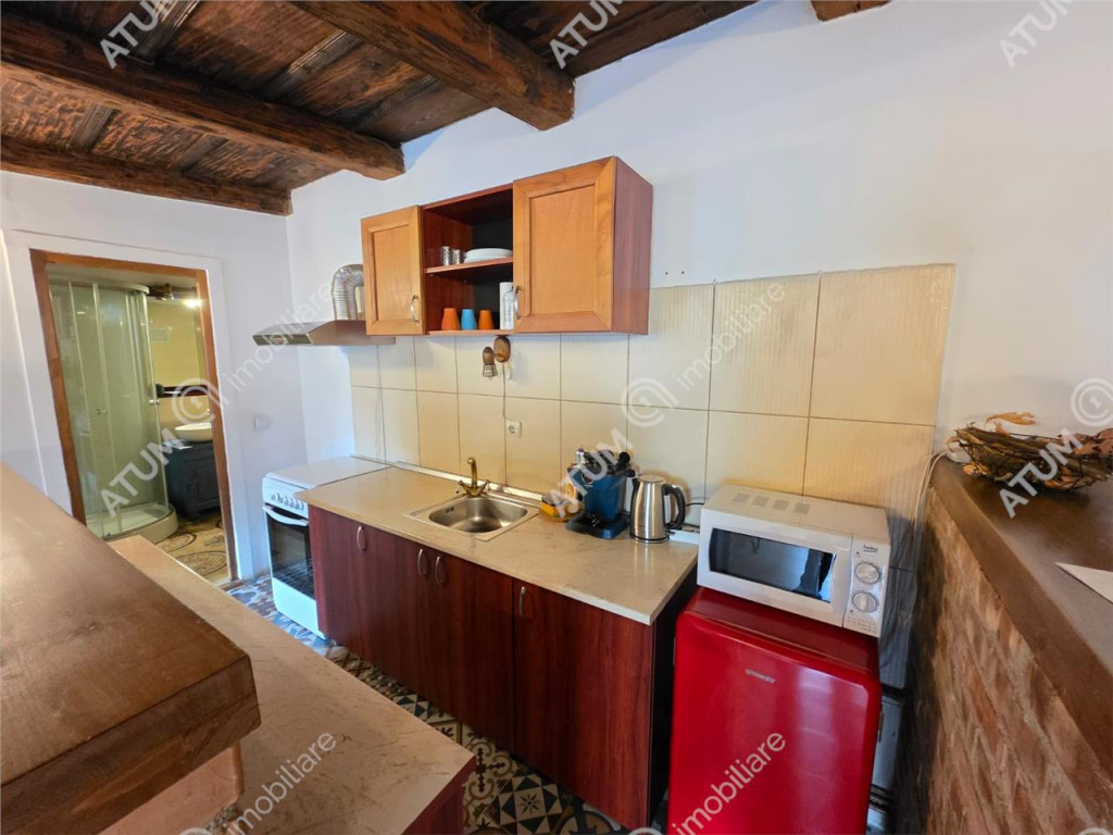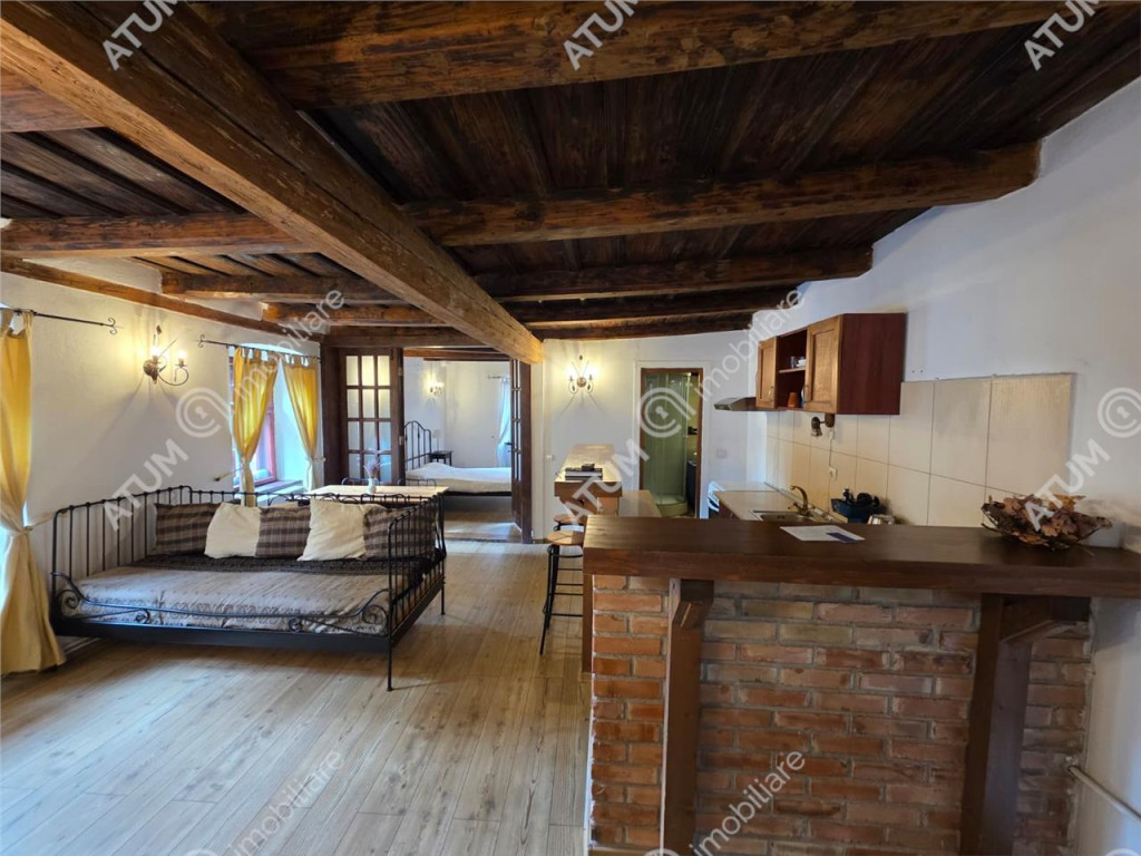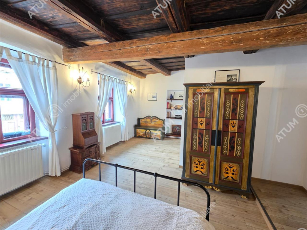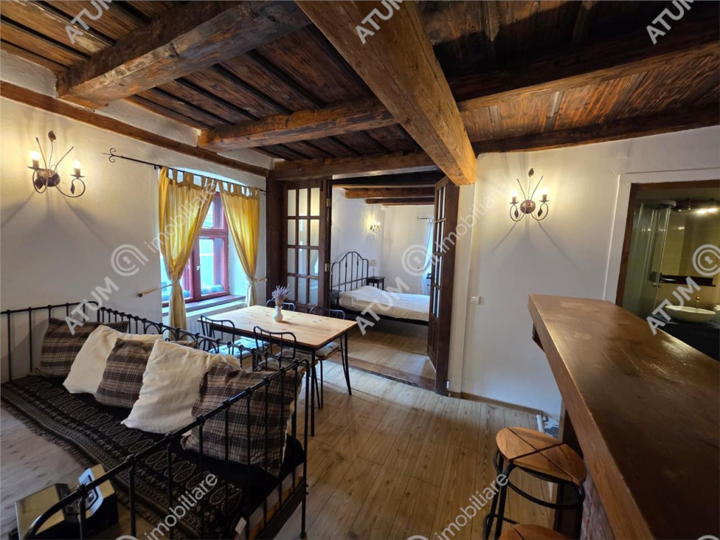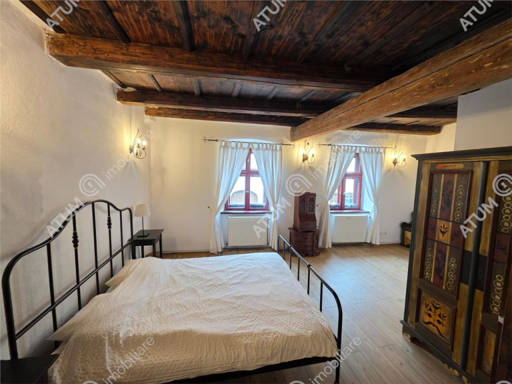 Va prezentam spre vanzare un apartament cu 3 camere decomandate, amplasat la etajul 1 al unei case cu regim de inaltime P E Pod, situata in zona istorica a orasului Sibiu. Locuinta este compusa din living open-space cu bucataria, doua dormitoare, camara, grup sanitar, toate acestea insumand 84 mp utili. Apartamentul se vinde complet mobilat si echipat cu aragaz, frigider, masina de spalat rufe, hota, TV, etc. Apartamentul a fost renovat recent si beneficiaza de dotari precum: parchet lemn masiv, gresie, faianta, tamplarie dubla de lemn, usi interioare din lemn, centrala termica proprie, instalatie termica si electrica schimbata, calorifere din otel, semineu functional, tavane din lemn reonditionat si tratat. Imobilul este situat in zona centrului istoric, accesul fiind facil spre Piata Mare, facultati, scoli, gradinite dar si la alte puncte de interes personal (spatii comerciale, statii de mijloace de transport in comun). Valoarea de achizitie a apartamentului este de 180.000 euro negociabil. ID intern: 3276.