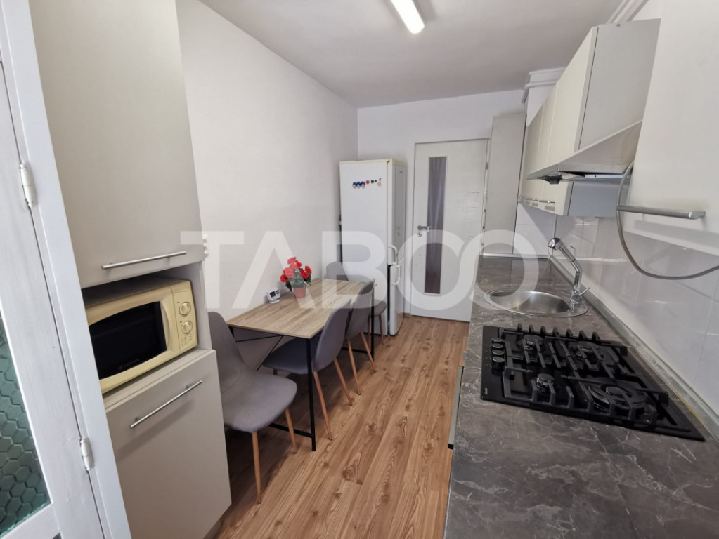 Apartament 3 camere de vanzare, decomandat, 66 mp, zona Terezian, Sibiu. TABOO Imobiliare propune un apartament de vanzare cu 3 camere, decomandat, situat in localitatea Sibiu, zona Terezian, aflat la Parter intr -un imobil tip bloc cu regim de inaltime pe Parter + 4 Etaje; anul constructiei 1980, structura beton. Suprafata utila de 66 mp + pivnita de 8 mp. Apartamentul este structurat astfel: • Hol; • Bucatarie; • 2 Bai; • Living; • 2 Dormitore; • Hol intermediar; • Camara; Finisajele interioare sunt moderne: • Usa intrare: metal; • Usi interioare: celulare; • Tamplarie ferestre: pvc; • Pereti: vopsea lavabila, faianta; • Podele: parchet, gresie. Utilitati si dotari: • Bucatarie: mobilata, utilata; • Mobilat: partial; • Utilitati: curent electric, apa, canalizare, gaz, catv, acces internet, fibra optica; • Izolatii: exterior; • Contorizare: apometre, contor gaz, contor curent electric; • Caracteristici bloc: interfon. • Instalatie electrica schimbata Apartamentul se vinde partial mobilat si utilat cu: plita pe gaz, cuptor, hota, masina de spalat rufe, masina de spalat vase, frigider cu congelator. Incalzirea se realizeaza prin centrala proprie, calorifere. Se accepta ca si modalitate de plata surse proprii sau credit bancar. Pret: 122.000€ Cod ofertă / ID: P24085 Sună-ne acum la 0369.822.820 și află detalii despre această proprietate de vanzare din Sibiu, dar și despre alte proprietăți potrivite pentru tine. Informatii speciale: 1. Descarcă aplicația pe mobilul tau "TABOO Imobiliare" din Apple Store, Google Play sau Huawei AppGallery pentru a afla instantaneu noile proprietăți care intră pe piață. 2. Dacă ai o proprietate pe care vrei să o vinzi sau să o închiriezi, suntem aici pentru tine! Contactează-ne pentru o evaluare gratuită fără obligații și vei descoperi avantajele de a lucra cu o echipă dedicată și experimentată. 3. Dacă vrei sa incepi o cariera de agent imobiliar, suna la 0369.822.820 si programeaza o intalnire pentru a afla toate beneficiile si avantajele. Intră pe TABOO.ro și descoperă cele mai recente oferte, actualizate zilnic. Anunt actualizat in 5 decembrie 2025. Id intern: P24085
