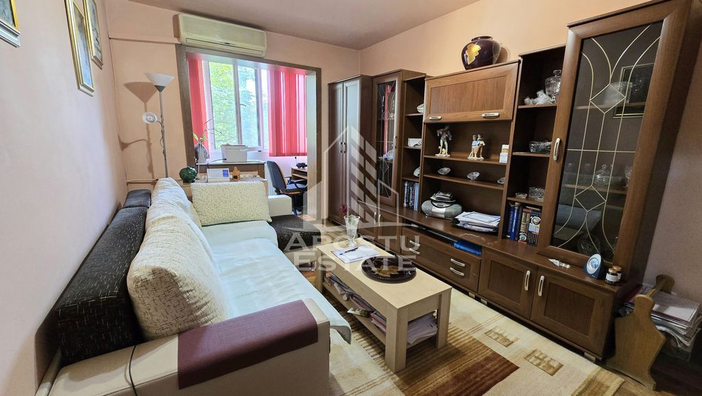 Apostu Estate va ofera spre vanzare un apartament cu 3 camere, amplasat la etajul 1, in zona Dacia. Apartamentul se afla la cateva minute fata de statia de autobuz, piata Dacia, parc, scoala si la 8 minute fata de Iulius Mall. Apartamentul are o suprafata aproximativa de 56 mp, este semidecomandat si compartimentat astfel: - hol de acces - bucatarie - baie prevazuta cu geam pentru aerisire - living spatios cu balcon - hol intermediar - dormitor - dormitor - apartamentul beneficiaza de boxa Confortul termic este realizat prin termoficare, dar si prin intermediul aparatului de aer conditionat. Oferim consultanta bancara prin colaboratorii nostri pentru alegerea celui mai potrivit credit. Disponibil imediat! Va asteptam cu drag la o vizionare chiar astazi!