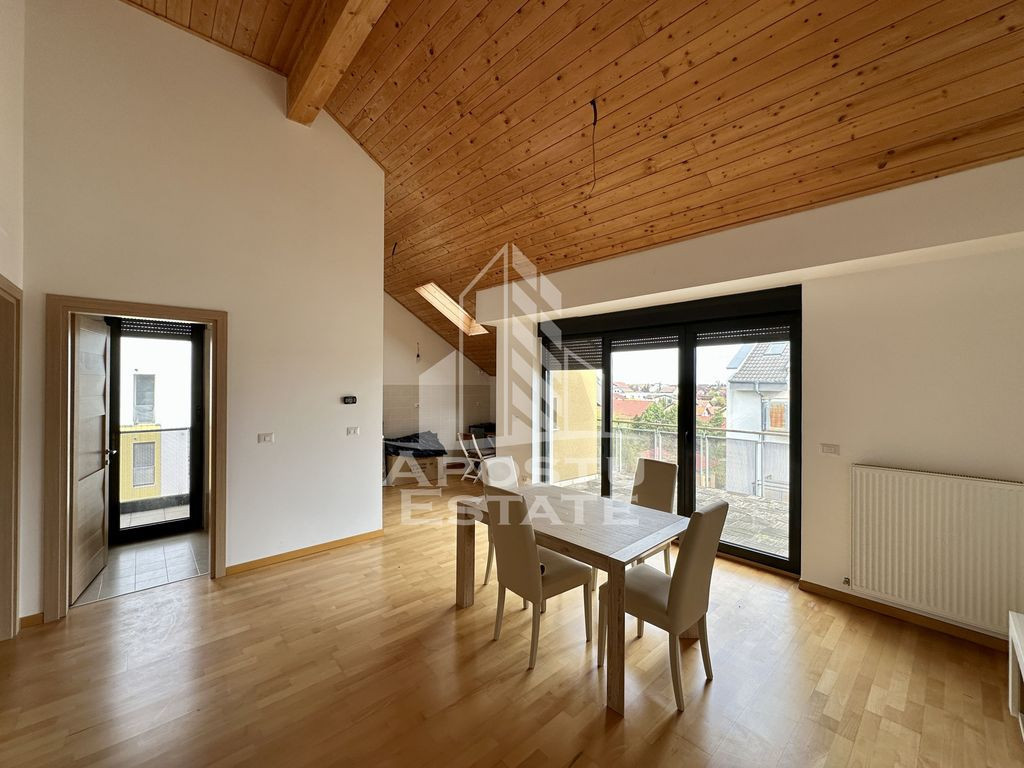 APOSTU ESTATE va propune spre vanzare, un apartament modern, cu 3 camere, situat la etajul al treilea, tip mansarda, intr-un bloc construit in 2014, la intrare in Dumbravita, in spatele magazinului Kaufland. Compartimentare functionala: Living deschis, integrat cu bucataria, ideal pentru momente de relaxare si iesire pe terasa; Baie eleganta dotata cu cada, perfecta pentru momente de rasfat; Dormitorcu iesire pe terasa; Dormitor; Baie de serviciu; Suprafata generoasa si facilitati: 66 mp utili pentru locuinta, compartimentati eficient; Locatie de exceptie: Amplasare excelenta, in imediata apropiere de Kaufland, oferind acces rapid la magazine, servicii si alte facilitati urbane; Transport public usor accesibil; Consultanta financiara personalizata: Oferim suport si solutii financiare prin partenerii nostri, pentru a va face procesul de achizitie cat mai simplu si accesibil. Va invitam cu drag la o vizionare pentru a descoperi toate avantajele acestui apartament unic! CP2436591