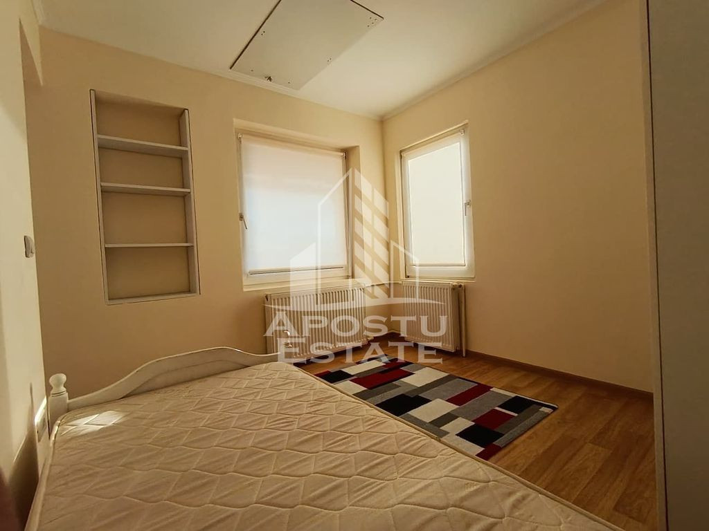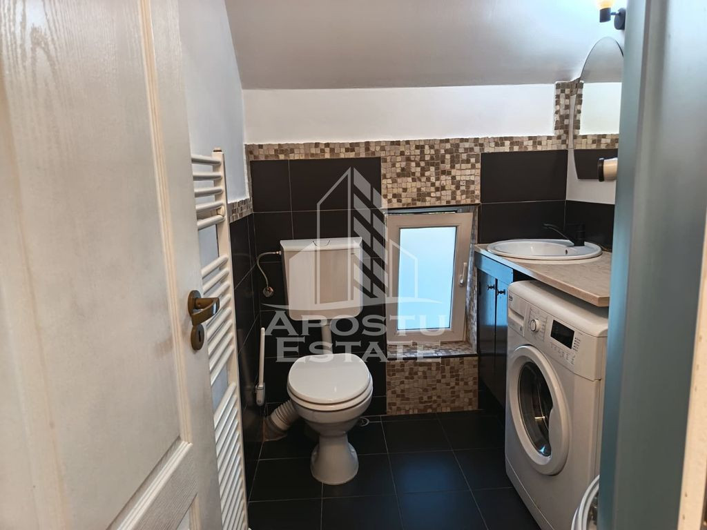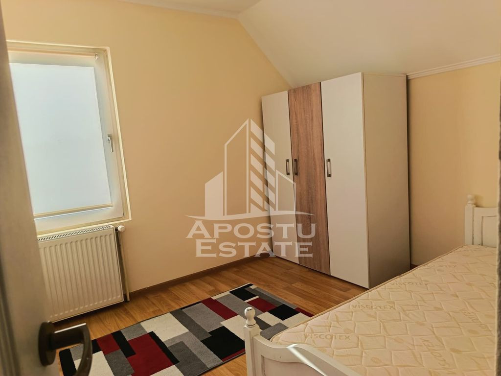 Apostu Estate vă propune spre închiriere Apostu Estate vă propune spre închiriere un apartament modern, cu 3 camere, situat într-o casa construita in 2010 Detalii apartament Suprafață utilă: 55 mp Compartimentare: hol de acces, living luminos și spațios, bucătărie complet mobilată și utilată cu loc de luat masa, dormitor matrimonial mobilat, baie cu dus geam pentru ventilație naturală, casa dispune si de o curte comuna Etaj: mansarda An construcție: 2010 Confort și facilități Centrală termică proprie Încălzire prin calorifere Aer condiționat Aragaz, frigider, mașină de spălat rufe TV, internet, cablu Geamuri termopan PVC Interfon/videointerfon Loc de parcare inclus în preț Localizare Zonă liniștită și bine conectată Aproape de mijloace de transport, magazine, Ideal pentru Cupluri Familii Profesioniști care lucrează remote Preț chirie: 360 € Garanție: 360 € Perioada minimă de închiriere: 12 luni Programează o vizionare! ID intern