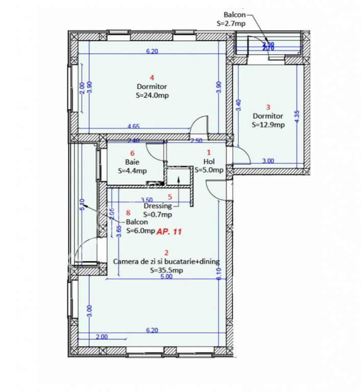 De vanzare apartament de 3 camere decomandate cu 2 balcoane, in suprafata totala de 107,70 mp, situat la etajul intermediar 1, orientare ESTICA, localizat in Selimbar vis a vis de Shopping City. Apartamentul situat la etajul intermediar 1 se afla intr-o cladire noua de apartamente care dispune de: izolatie termica exterioara cu vata bazaltica, placari exterioare de contrasc cu piatra decorativa, usa de acces din PVC izolatoare termic si fonic cu inchidere electro magnetica, parcari private destinate locatarilor cat si vizitatorilor si zone verzi decorative. Apartamentul are suprafata utila de 82,50 mp, acesta fiind compus din camera de zi tip open space cu bucataria de 35,50 mp care pot fi separate, doua dormitoare dintre care cel matrimonial de 24,00 mp iar cel secundar destinat copilului sau oaspetilor de 12,90 mp, baia 4,40 mp dotata cu geam de aerisire si un hol de 5,70 mp cu spatiu destinat pozitionarii cuierului cu pantofar. Separat de suprafata utila apartamentul dispune si de 2 balcoane, unul cu suprafata de 6 mp in care accesul se face din camera de zi iar al doilea de 2,70 mp cu acces din dormitorul secundar.. Parcarea se realizeaza pe propriul loc de parcare amenajat si delimitat din curtea privata. Locuinta se preda la stadiul de alb cu finisaje si dotari precum: -Usa de metal anti-efractie la intrarea in apartament placata cu MDF; -Pereti tencuiti ( tencuiala pe baza de var-ciment ), gletuiti si zugraviti cu lavabila alba in 2 straturi; -Pardoseli amenajate cu sapa autonivelanta semiuscata elicopterizata pregatite pentru parchet-gresie; -Tamplarie PVC marca Rehau cu 5 camere si 3 foi de sticla cu Low-E, glafuri exterioare de aluminiu si PVC interior; -Centrala proprie pe gaz in condensare si incalzire in pardoseala cu sistem de termostatare individuala a fiecarei incaperi; -Distribuitor pentru instalatia de incalzire; - Racorduri apa-canal in bucatarie si bai; - Racord gaz metan la bucatarie; -Instalatii electrice trase pe pozitie cu tablou general si sigurante pentru consumatorii de putere; -Instalatii pentru TV si internet trase pe pozitie. Din punct de vedere al localizarii, imobilul dispune de acces facil prin intermediul a mai multe cai de acces, complexul de magazine Shopping City se afla la doar 5 minute de mers pe jos, statii de transport in comun la 5 minute de mers pe jos, institutii de invatamant in apropiere. Valoarea de achizitie este de 184,700 euro cu TVA 21% inclus, acesta poate fi achizitionat si prin accesarea unui credit bancar. ID intern: 2996.