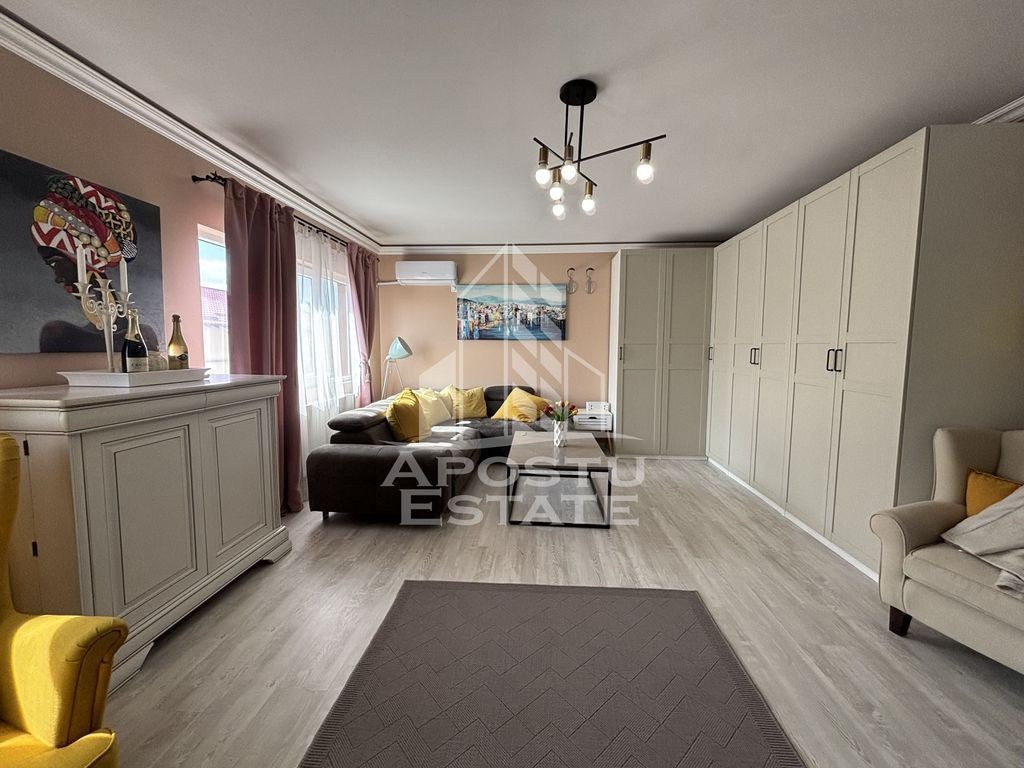 Apostu Estate va propune spre vanzare un apartament complet mobilat si utilat, situat in zona Turist – Calea Sagului, in imediata apropiere de Shopping City. Apartamentul este amplasat la etajul 5 (etaj adaugat in 2015, bloc anvelopat), are 3 camere, 2 bai (dintre care una cu acces din dormitorul matrimonial) si bucatarie inchisa, oferind o compartimentare eficienta si spatii optimizate. Detalii suplimentare: • Suprafata utila generoasa • Centrala proprie pe gaz cu termostat Wi-Fi Salus (control prin aplicatie) • Aer conditionat Tesla • 2 televizoare Sony • Frigider Samsung side by side • Masina de spalat rufe • Masina de spalat vase • Cuptor microunde Samsung • Cuptor Bosch • Plita pe inductie Whirlpool • Hota Elica Baia matrimoniala este placata cu piatra naturala si travertin, iar mobilierul este realizat din MDF vopsit. Un plus aparte este pantofarul generos, cu o capacitate de stocare de pana la 180 de perechi de pantofi. Si da, ramane si barul! Cat de plin… ramane de discutat! Pentru mai multe detalii sau poze, va rugam sa ne contactati in privat. Va asteptam cu drag la vizionare!
