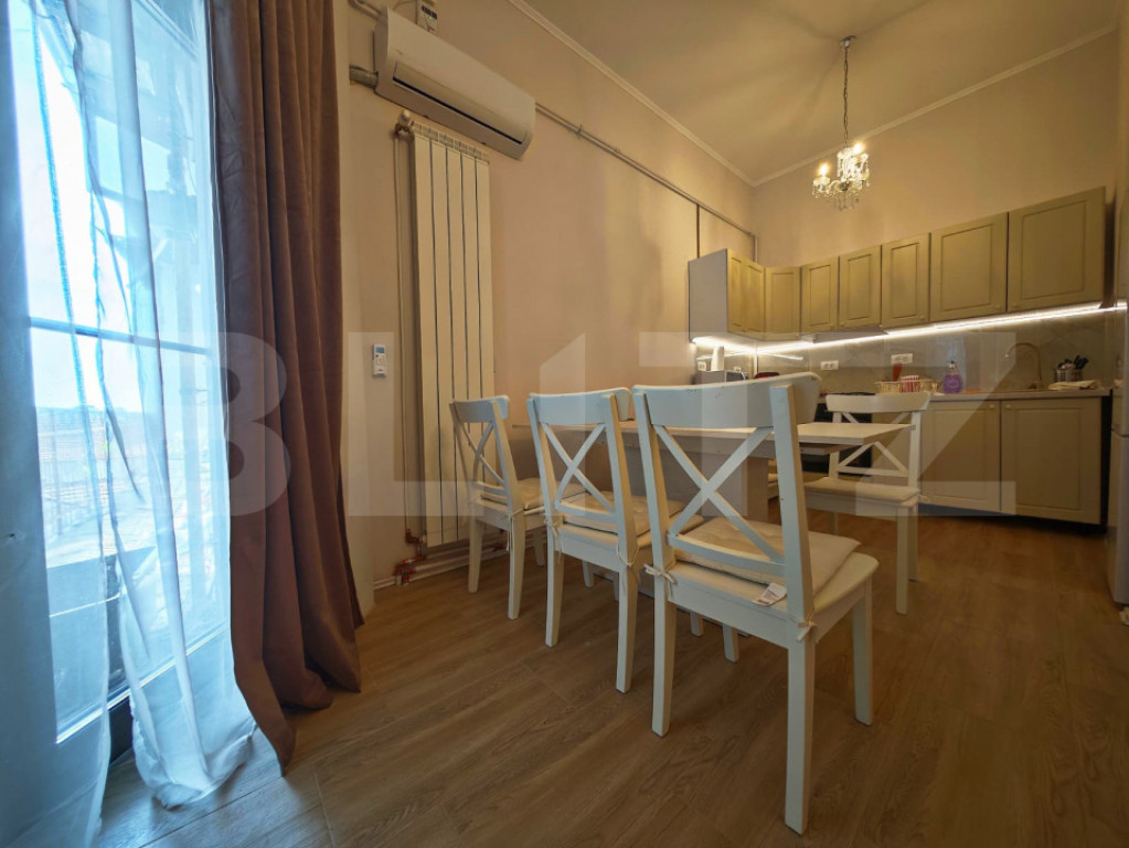 Blitz propune spre vânzare un apartament deosebit, situat într-o clădire istorică de aproximativ 100 de ani, în imediata apropiere a Palatului Baroc, Parcului Petőfi Sándor și Gării Centrale. Cu o suprafață de 80 mp, acest apartament impresionează prin tavanele înalte, ușile masive din lemn alb și geamurile ample care inundă fiecare încăpere în lumină naturală. Restaurat cu respect pentru farmecul original, păstrează autenticitatea construcțiilor de epocă, completând-o cu finisaje moderne și soluții elegante pentru confortul de zi cu zi. Detalii deosebite: 2 dormitoare spațioase și un living generos cu bucătărie open-space. Baie cu duș tip walk-in și design contemporan. 2 balcoane largi, ideale pentru momentele de relaxare. Boxă de depozitare la subsol. Centrală proprie pe gaz – costuri de întreținere reduse. Tavan izolat cu vată bazaltică pentru eficiență termică. Aer condiționat, întrerupătoare tactile și detalii moderne atent integrate. Parchet și uși din lemn masiv recondiționate. Scară curată și renovată, cu acces facil Posibilitate de parcare în fața clădirii Poziționarea centrală face ca acest apartament să fie o alegere excelentă atât pentru o locuință elegantă, cât și pentru regim hotelier premium, oferind un potențial investițional remarcabil. Este un spațiu creat cu gust și personalitate, în care eleganța clasică se împletește armonios cu confortul modern. Cod ofertă / ID BLITZ: P152382 Id intern: P152382