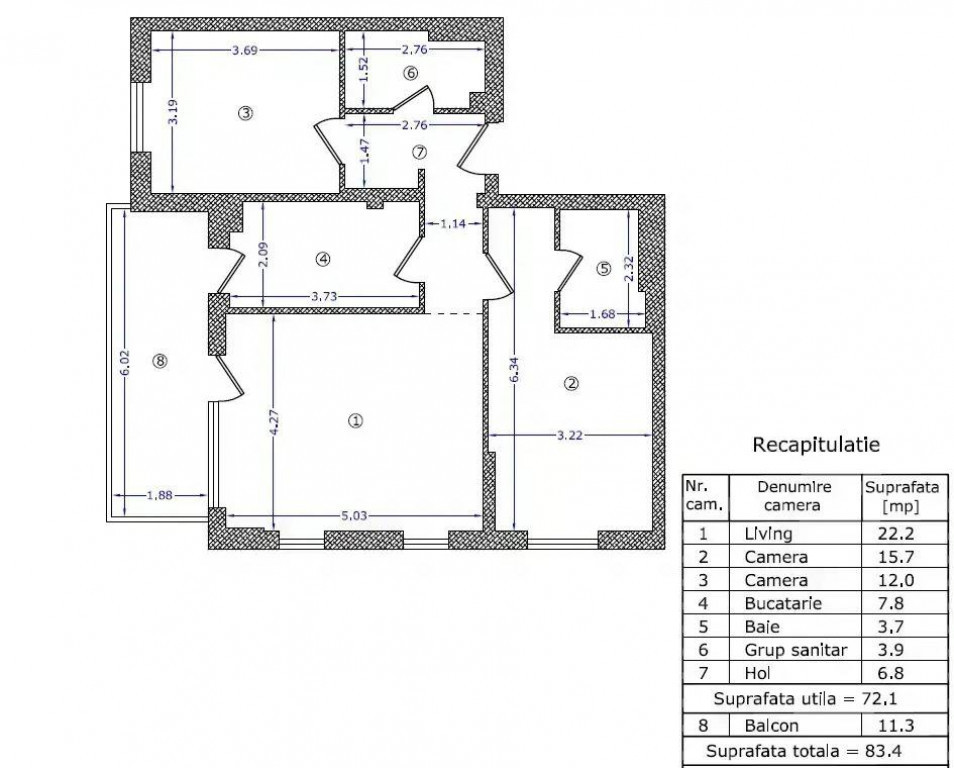 Suprafața utilă 72 m²