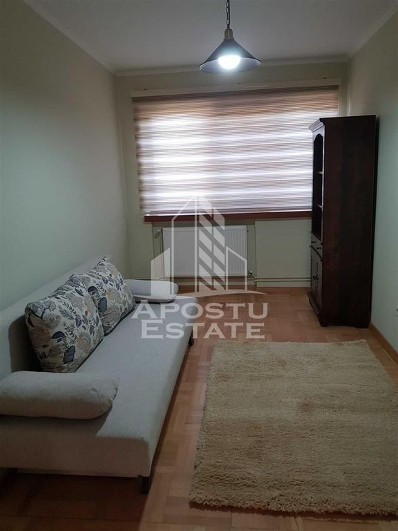 Apostu Estate va propune spre inchiriere un apartament elegant, semidecomandat, cu o suprafata utila generoasa de 68 mp, situat la etajul 3 al unui imobil solid cu acoperis din tigla, ce confera un plus de izolare termica si fonica. Locuinta se remarca printr-o compartimentare functionala si luminoasa, ce asigura intimitate si confort: trei camere spatioase, o bucatarie bine organizata, o baie practica si holuri de legatura ce ofera un flux armonios. Finisajele sunt de calitate: usa de intrare este din lemn masiv, usile interioare pastreaza aceeasi linie clasica si calda, iar tamplaria PVC cu geam tripan asigura un ambient linistit si eficienta energetica sporita. Mobilierul de la Mobexpert adauga un aer de rafinament, cu detalii atent alese si piese ergonomice, oferind atat estetica, cat si functionalitate. Este o locuinta ideala pentru cei care cauta confortul unui spatiu primitor, bine intretinut, intr-o zona linistita, cu acces facil la toate facilitatile urbane. Disponibil imediat pentru inchiriere – un camin care imbina eleganta cu linistea, perfect pentru un stil de viata echilibrat. Zona beneficiaza de acces facil la mijloacele de transport in comun centre comerciale parcuri si alte facilitati importante Compartimentare: -hol de acces -living -dormitor -baie -bucatarie -balcon Vecinatati: -Piata Mihai Viteazu -Instituti bancare -Supermarket -Mijloace de transport in comun Confort termic: Apartamentul beneficiaza de un sistem de incalzire centralizat cu centrala proprie pe gaz asigurand confort termic in toate anotimpurile. Apartamentul detine si sistem de aer conditionat pentru a mentine temperatura optima in timpul verii. Apartamentul are si un loc de parcare in curte Pentru mai multe detalii nu ezitati sa ne contactati! Va asteptam cu drag la o vizionare! ID : CP1892941
