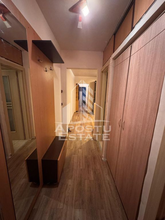 APOSTU ESTATE va propune spre inchiriere un apartament spatios si elegant, cu 3 camere, situat intr-o zona linistita si bine conectata din Timisoara, ideal pentru familii sau persoane care doresc un spatiu generos si confortabil. Suprafata utila: 50 mp Compartimentare eficienta: Hol de acces generos Bucatarie complet mobilata si utilata, Living luminos si spatios Dormitor matrimonial mobilat Camera secundara mobilata Baie principala cu cabina de dus si geam pentru ventilatie naturala Grup sanitar de serviciu Confort si facilitati: Centrala termica proprie pe gaz Aer conditionat Apartamentul este complet mobilat si utilat Localizare: Zona Cetatii – liniste, acces facil spre oras, in apropiere de magazine, scoli si mijloace de transport in comun. Ideal pentru: Familii Cupluri Profesionisti care lucreaza remote sau au nevoie de birou acasa Pret chirie: [400 euro] Programeaza o vizionare! ID intern: CP2798443