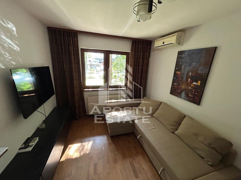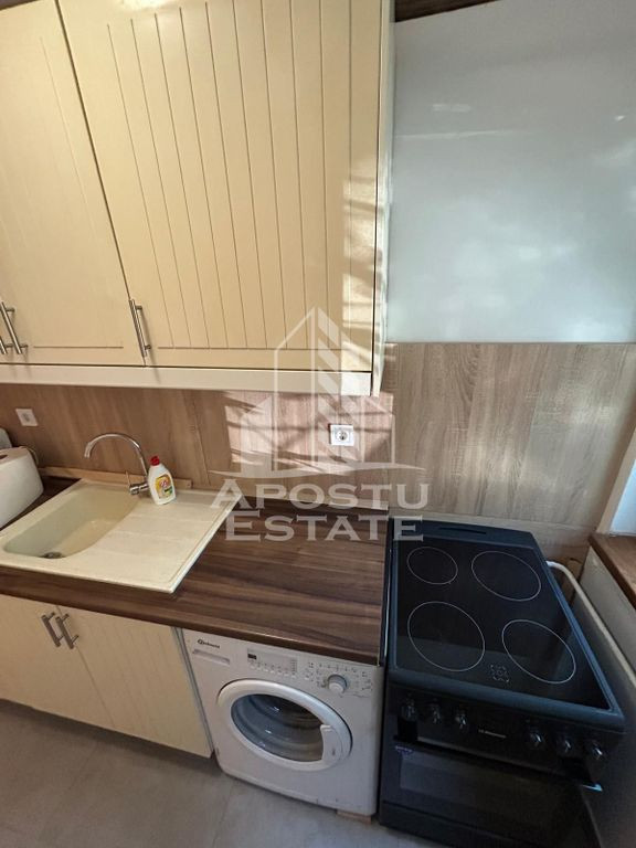 Apostu Estate va propune spre inchiriere Apostu Estate va propune spre inchiriere un apartament modern, cu 3 camere Detalii apartament Suprafata utila: 57mp Compartimentare: hol de acces, living luminos si spatios, bucatarie complet mobilata si utilata cu loc de luat masa, dormitor matrimonial mobilat, baie cu cada si geam pentru ventilatie naturala, balcon Etaj: parter din 4 An constructie: 1980 Confort si facilitati Incalzire prin Colterm (calorifere) Aer conditionat Aragaz, frigider, masina de spalat rufe TV, internet, cablu Geamuri termopan PVC Interfon Localizare Zona linistita si bine conectata Aproape de mijloace de transport, magazine, scoli Ideal pentru Cupluri Familii mici Pret chirie: 400 € Garantie: 600€ Perioada minima de inchiriere: 12 luni Programeaza o vizionare! ID intern: CP2685942