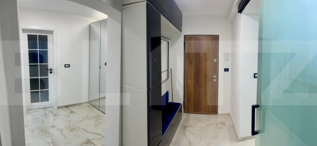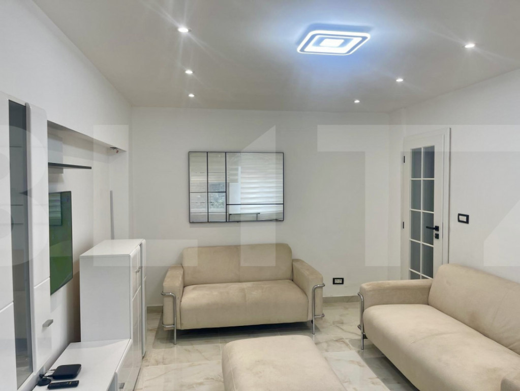 Va propunem spre inchiriere apartament cu 3 camere, renovat complet, situat în zona Podgoria, una dintre cele mai căutate zone rezidențiale din Arad, cu acces rapid la centre comerciale, restaurante, școli și transport în comun. Apartamentul se prezintă impecabil, cu finisaje de calitate superioară executate recent: gresie tip marmură în toate camerele, tavan fals cu iluminat LED, tâmplărie modernă cu jaluzele zi-noapte și uși interioare premium. Ce include: Living spațios, complet mobilat și utilat — canapele din piele, mobilier TV, masă dining cu scaune Bucătărie modernă echipată complet — electrocasnice încorporate (cuptor, plită în vitroceramică, microunde, hotă), mobilier lucios cu blat din piatră Încălzire în pardoseală în toată locuința + centrală termică proprie Baie modernă cu cabină de duș, mobilier suspendat, iluminat LED Hol generos cu șifonier oglindă de perete Balcon Dormitoarele sunt libere — spații luminoase, pregătite pentru personalizare după preferințele tale Suprafață: 82 mp utili Etaj: 1/10 Parcare: disponibilă la liber în spatele blocului Cod ofertă / ID BLITZ: P170014 Id intern: P170014