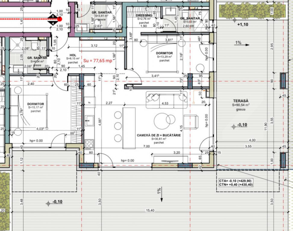 Apartament cu 4 camere 91 mp, Terasa de 43 mp, Bloc Nou, zon