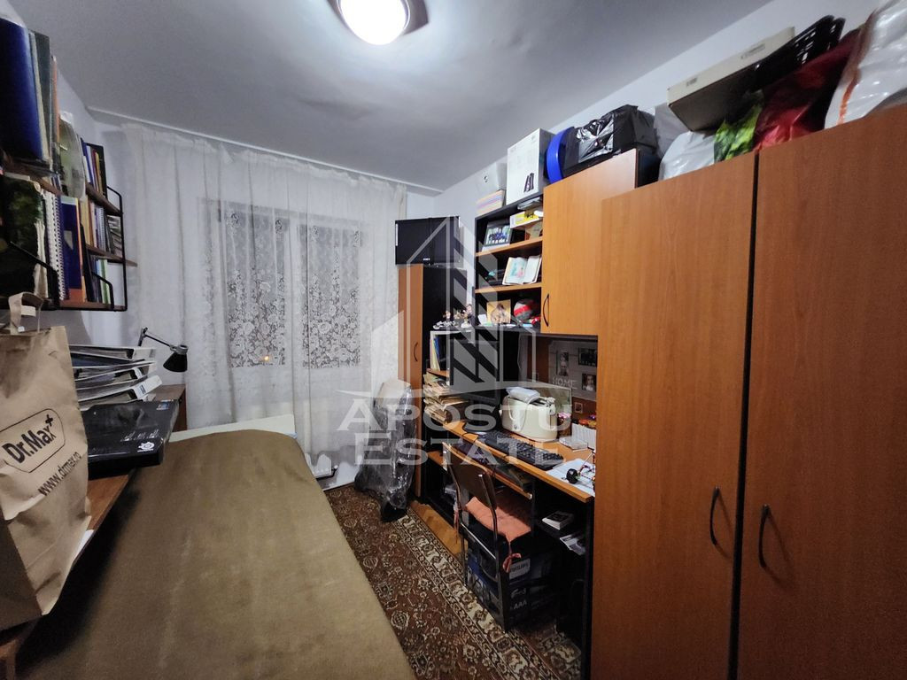 APOSTU ESTATE va ofera spre vanzare un apartament cu 4 camere, situat la etajul 2, in zona Dacia. Zona este linistita, apartamentul fiind situat la doar cateva minute de scoala, gradinita, parc, market sau statie de autobuz. In imediata apropiere se afla Piata Dacia. Iulius Mall la 1.2 km distanta. Apartamentul are o suprafata utila de 66 mpu, la care se adauga o boxa de 5 mp si un balcon generos. Este compartimentat astfel: - hol de acces - dormitor matrimonial - dormitor cu acces la balcon - living spatios - baie prevazuta cu geam - dormitor - bucatarie - boxa inscrisa in cf Apartamentul se vinde mobilat si utilat si beneficiaza de instalatie electrica schimbata. Confortul termic este realizat prin centrala proprie. Oferim consultanta bancara prin colaboratorii nostri pentru alegerea celui mai potrivit credit. Va asteptam cu drag la o vizionare! Disponibil imediat!