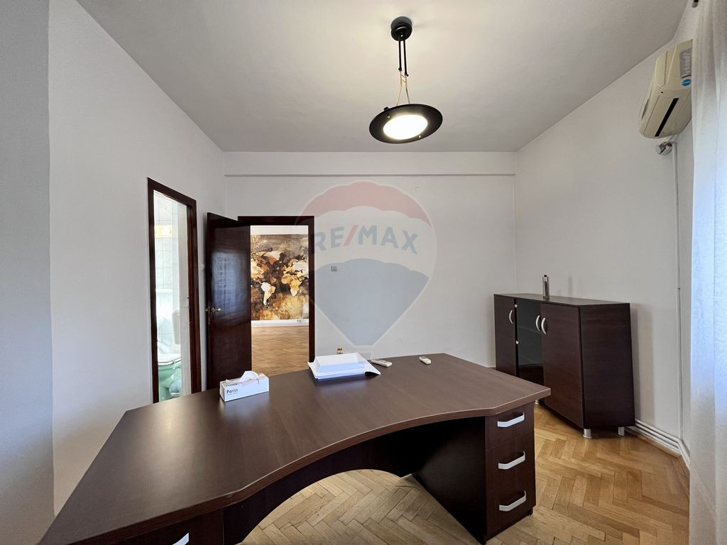 Vă prezint spre închiriere un apartament cu 4 camere, situat la 1 minut de Piața Victoriei, pe Bulevardul Lascăr Catargiu langa cladirea cu Orange. Apartamentul se pretează foarte bine pentru activități de birou (sediu firmă, cabinet, activități similare), dar poate fi închiriat și în regim rezidențial. Imobilul este o construcție interbelică, cu 4 etaje + mansardă, finalizată în anul 1930, dotată cu lift. Clădirea este încadrată în clasa de urgență 2. Apartamentul este situat la etajul 2, cu vedere către fațada blocului, orientare Nord–Est spațios și fiind circular este excelent compartimentat. Tavanele înalte, obloanele si tâmplăria din lemn, ușile și parchetul din lemn masiv păstrează farmecul și eleganța specifică perioadei interbelice. Un avantaj important îl reprezintă centrala proprie, precum și aerul condiționat montat în fiecare cameră, asigurând un confort sporit pe tot parcursul anului. Pentru mai multe detalii, nu ezitați să mă contactați. Vă invit la vizionare!