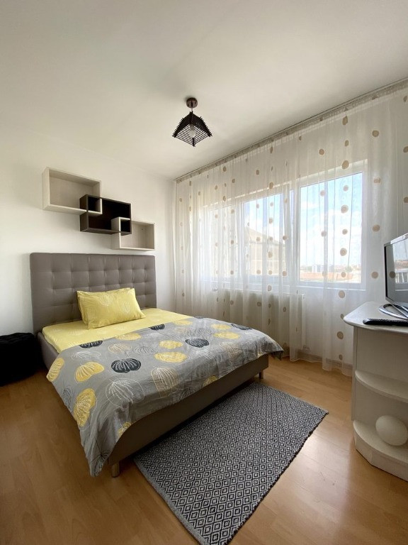 Inchiriem apartament cu doua camere in fata la Iulius Mall , decomandat , 54 mp , amenajat , clima , utilat si mobilat modern , etaj intermediar.