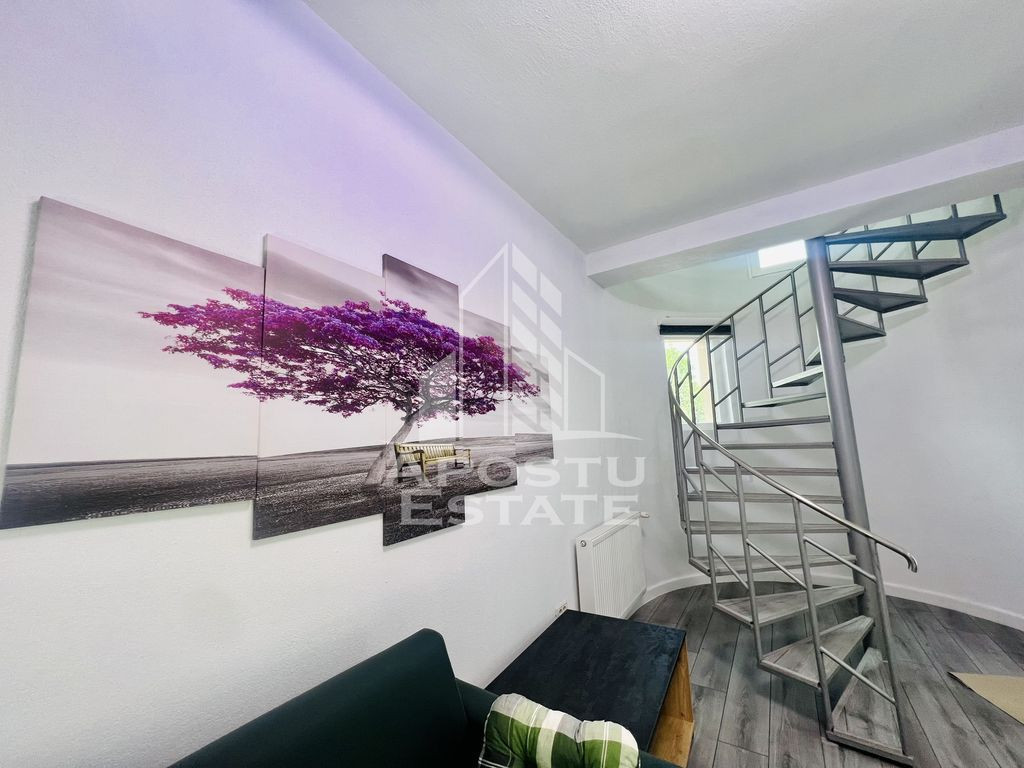 APOSTU ESTATE va propune spre inchiriere un apartament modern si complet utilat, cu 2 camere, situat in zona Dorobantilor din Timisoara, ideal pentru cupluri sau profesionisti care cauta confort si acces rapid catre punctele cheie ale orasului. Suprafata utila: 69mp Etaj: Parter Compartimentare: • Living open space cu bucataria, complet mobilata si utilata • Dormitor mobilat • Baie cu cabina de dus si geam pentru ventilatie naturala Dotari si facilitati: • Centrala proprie cu incalzire prin calorifere • TV • Aer conditionat ( se monteaza la cerere) • Masina de spalat rufe • Loc de parcare • Apartamentul se inchiriaza complet mobilat si utilat. Accesul in apartament se face din exteriorul cladirii ,individual pentru fiecare apartament. Pret:450€ Garantie:600€(posibilitate de plata in doua tranşe) Va asteptam cu drag la vizionare! ID intern: CP2617636!