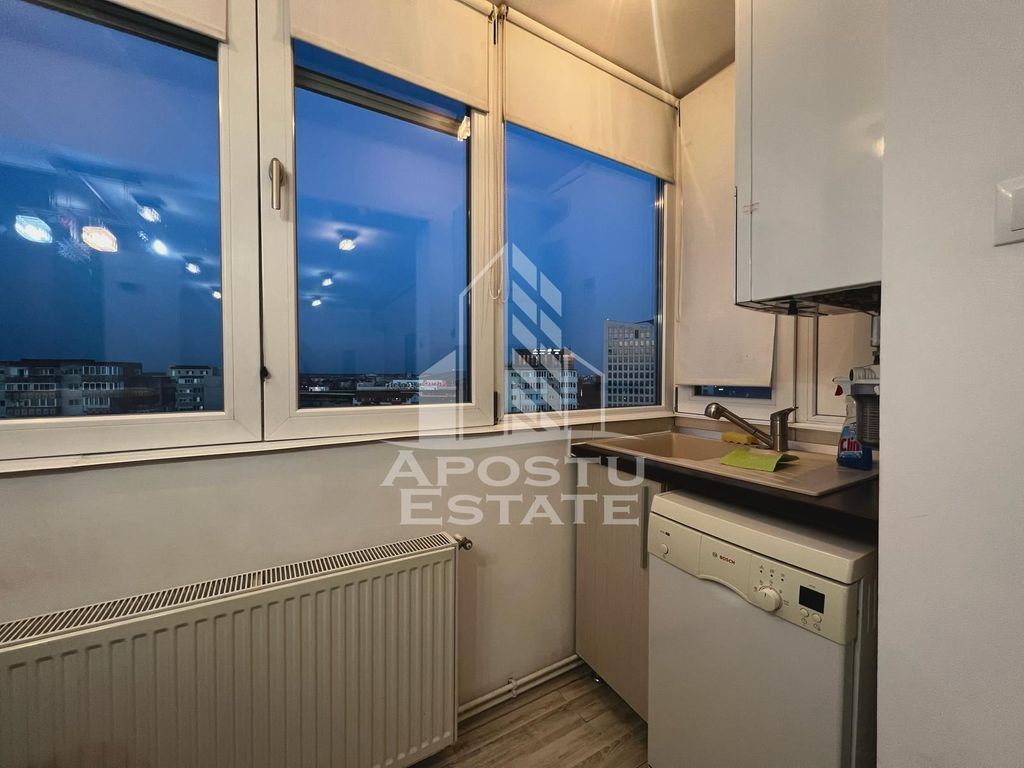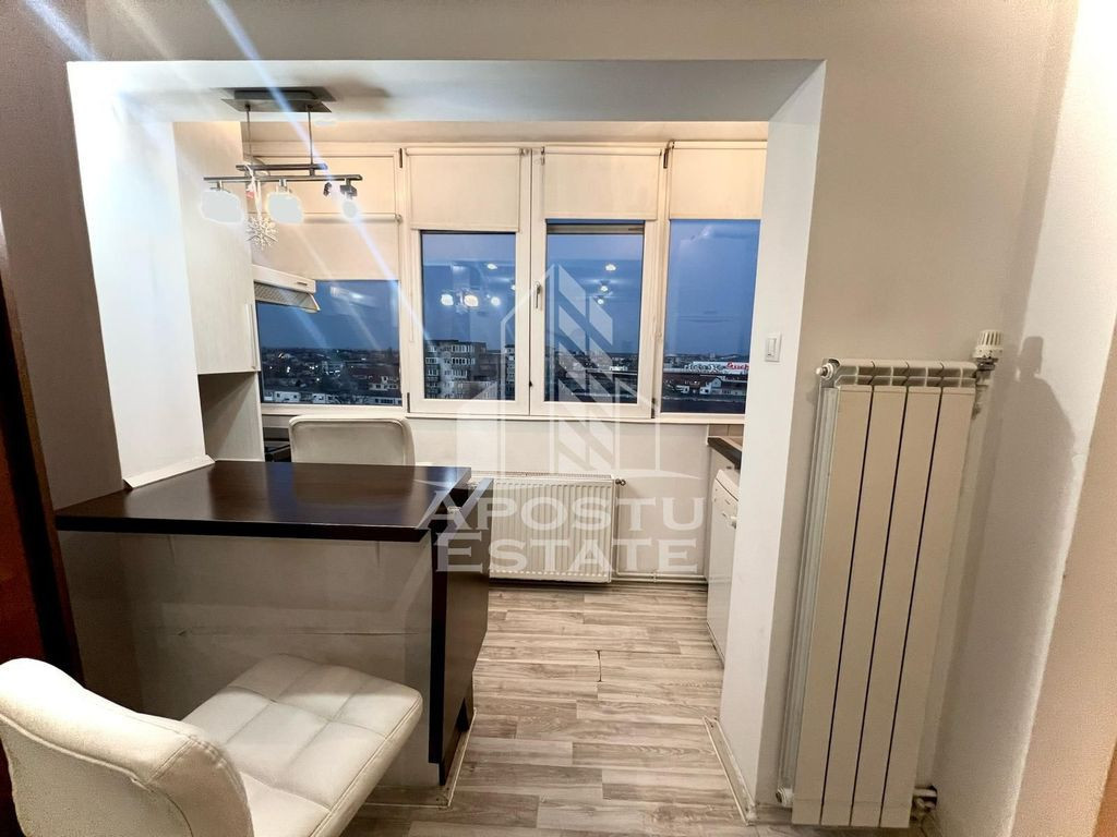 APOSTU ESTATE va ofera spre inchiriere un apartament cu 2 camere, open space la etajul 8 al unui imobil dispus pe 8 niveluri in zona Torontalului , langa Iulius Mall. Imobilul are o suprafata utila de 40 mp si este compartimentat astfel: - hol spatios - living cu canapea - bucatarie open space utilata - un dormitor matrimonial - o baie cu cada Alte detalii: Confortul termic se realizeaza cu ajutorul centralei proprii (prin calorifere) si al aerului conditionat. Va asteptam cu drag la o vizionare! ID intern: CP2366408!