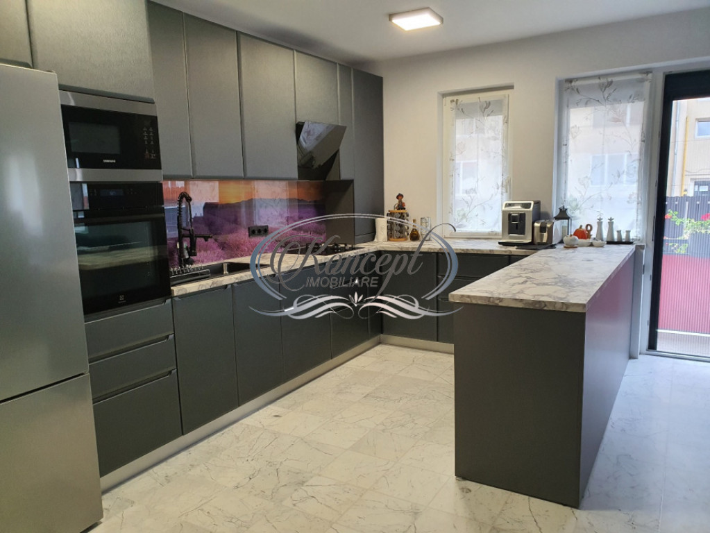 Koncept Imobiliare va ofera spre vanzare un apartament cu 3 camere pozitionat intr-o zona rezidentiala in plina dezvoltare, in Sesul de Sus – Tera,. Apartamentul se afla la parterul unui bloc construit in 2021, parte dintr-un ansamblu modern si bine organizat. Accesul se face printr-o gradina privata, iar zona ofera liniste, aer curat si proximitate fata de facilitati esentiale. Cu o suprafata utila de 65 mp, apartamentul este compartimentat in 3 camere, bucatarie, hol si 2 bai, cu posibilitati de recompartimentare pentru optimizarea spatiului. Exteriorul impresioneaza printr-o terasa de 60 mp placata cu granit si o gradina amenajata cu foisor, mobilier de exterior si acces individual, ceea ce transforma locuinta intr-un veritabil refugiu urban. Finisajele sunt moderne si atent alese: incalzire prin pardoseala, centrala termica, pervaze de granit, mobilier cu fronturi MDF, instalatii sanitare Grohe. Proprietatea se vinde complet mobilata si utilata, gata de locuit fara investitii suplimentare. Beneficiaza de 2 locuri de parcare incluse in pret, un avantaj esential in zona. Recomandat pentru familii care cauta o locuinta completa, cu spatiu exterior generos si finisaje premium. Apartamentul este ideal pentru cei care doresc confortul unei case la cheie, dar cu beneficiile unui ansamblu rezidential modern. Pentru informatii complete, programarea unei vizionari sau pentru a afla oferta noastra completa va stam la dispozitie telefonic, prin e-mail sau la sediul agentiei noastre, pe str. Aviator Badescu, nr. 19, Cluj-Napoca. Id intern: P20529