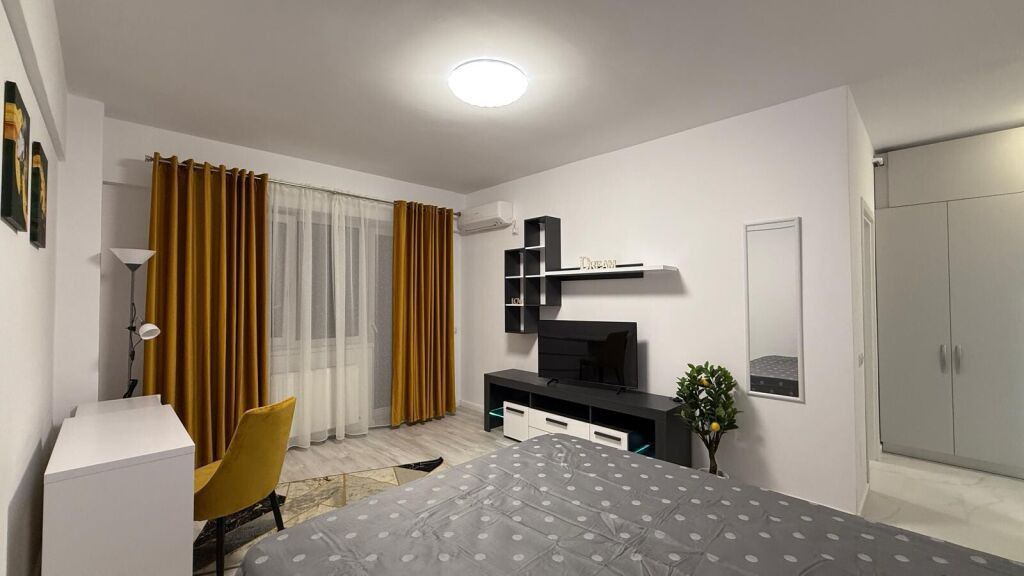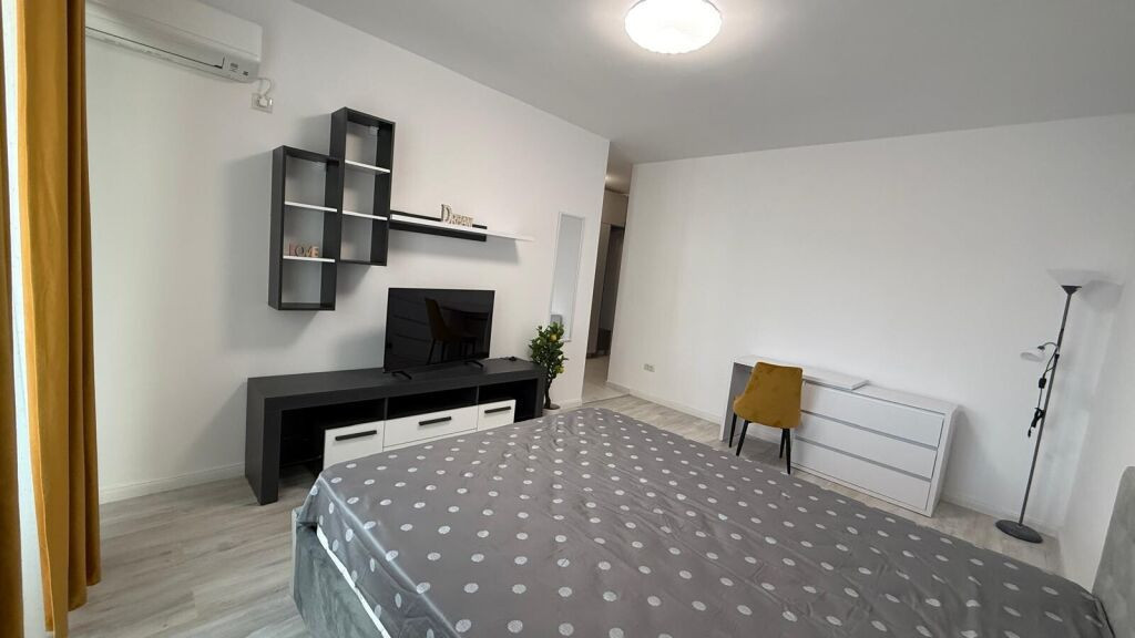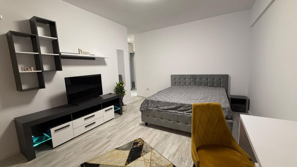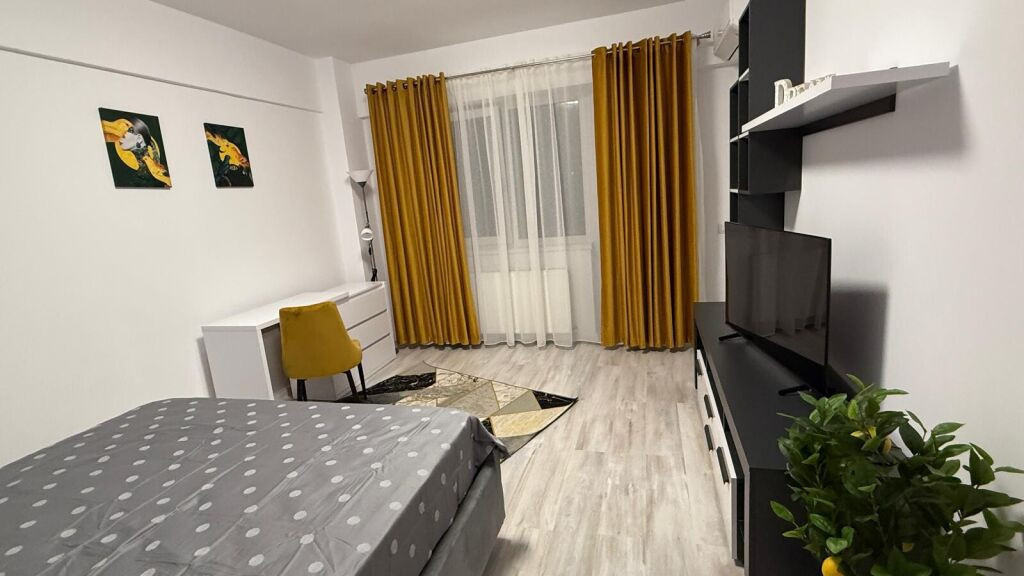Apartament cu 1 cameră decomandat, 41 mp, bucatarie separata, complet echipata, camera spatioasa cu pat matrimonial, saltea ortopedica, zona de birou, iesire in balcon deschis, acesta poate alegerea ideală pentru cei care caută confort, funcționalitate și proximitate față de tot ce contează. Amplasat într-o construcție nouă, aproape de centrul orașului, apartamentul beneficiază de o localizare excelentă, cu acces rapid către: - mijloace de transport în comun (tramvai, autobuz) - piețe, magazine, supermarketuri - școli, grădinițe, facultăți - centre comerciale (inclusiv Mall) - facultati. Prima închiriere – totul este nou, modern și nefolosit: - cameră spațioasă cu pat matrimonial și locuri generoase de depozitare - balcon deschis pentru momente de relaxare - bucătărie separată, închisă, complet mobilată și utilată - baie cu cadă - centrală termică proprie și aer condiționat Loc de parcare subteran inclus. Apartamentul este gata pentru mutare imediată. Ideal pentru o persoană sau un cuplu care își dorește un spațiu cochet, curat și bine amplasat.