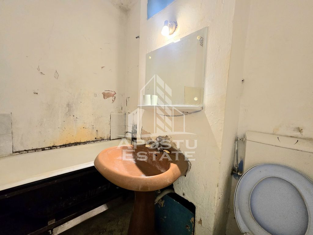 APOSTU ESTATE va ofera spre vanzare un apartament cu o camera, ce necesita renovare completa, situat la etajul 7 din 10 al unui bloc ce dispune de doua lifturi, amplasat in zona Circumvalatiunii. Apartamentul este ideal ca atat ca si investitie, cat si ca locuinta, aflandu-se la doar cateva minute fata de statia de autobuz, Kaufland, parc, scoala sau fata de sala de sport. Apartamentul are o suprafata aproximativa de 34 mp, fiind compartimentat astfel: - hol de acces - baie prevazuta cu cada - camera principala spatioasa - bucatarie separata - balcon cu vedere panoramica Apartamentul necesita renovare completa. Potizie excelenta, etaj intermediar si compartimentare buna. Confortul termic este realizat prin termoficare. Oferim consultanta bancara prin colaboratorii nostri pentru alegerea celui mai potrivit credit. Disponibil imediat! Va asteptam cu drag la o vizionare chiar astazi!
