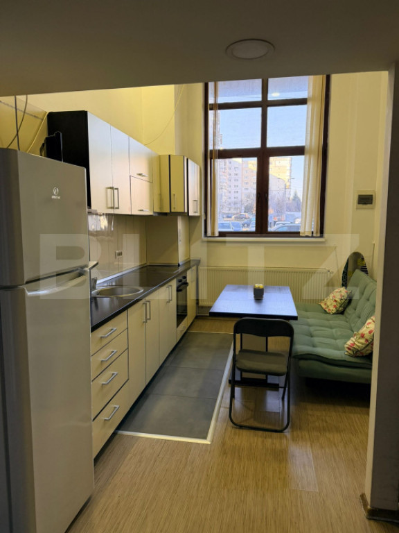 Blitz vă oferă o oportunitatea rară de a închiria un apartament cu adevărat deosebit! Punem la dispoziție un apartament cu 1 cameră, generos ca suprafață – 30 mp ingenios compartimentați pe două niveluri, rezultat al unui tavan înalt care conferă spațiului un aer exclusivist și elegant. Imobilul se află la parter, într-o zonă excelentă, și a fost amenajat modern, fiind folosit până de curând în regim AirBnb, aspect care confirmă atât funcționalitatea, cât și atractivitatea lui. Localizarea este pur și simplu ideală: ???? La doar 5 minute de plimbare până în Parcul Rozelor sau pe malul Someșului – perfecte pentru relaxare, sport sau ieșiri în aer liber. ???? Foarte aproape de stațiile de autobuz și tramvai, oferind conexiuni rapide spre orice punct al orașului. Acest apartament tip studio, cu design pe două niveluri, este o raritate pe piață și reprezintă alegerea ideală pentru cei care caută un spațiu modern, eficient și bine amplasat. Cod ofertă / ID BLITZ: P166876 Id intern: P166876
