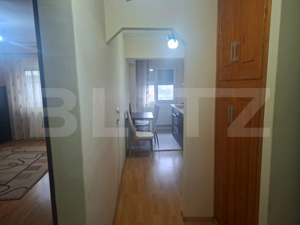 BLITZ va propune spre vanzare un apartament cu o camera renovat, complet mobilat si utilat, in zona Rogerius. Avand o suprafata de 34 de metri patrati, beneficiaza atat de o compartimentare eficienta, fiind decomandat, cat si de o priveliste panoramica spre oras, fiind la etajul 4. Orientarea sud-estica asigura o temperatura optima pe tot parcursul zilei, dar si o lumina excelenta. Apartamentul dispune de electrocasnice si mobilier in stare foarte buna, geamuri termopan cu rolete PVC, si usa de siguranta. Este situat in apropiere de parcuri, scoli, spatii comerciale, cafenele, restaurante si mijloace de transport in comun. Hai la vizionare sa te convingi si tu! Cod ofertă / ID BLITZ: P168729 Id intern: P168729