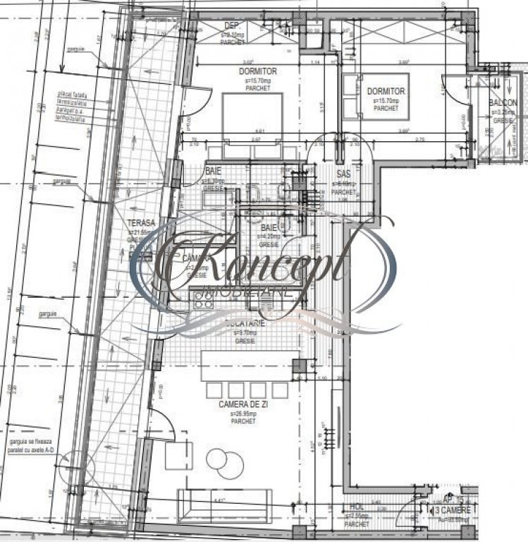 Koncept Imobiliare va ofera spre vanzare un apartament cu 3 camere, situat in cartierul Someseni, intr-un imobil nou finalizat in anul 2022. Cladirea are un regim redus de inaltime, cu doar 3 etaje si un total de 17 apartamente, oferind un cadru rezidential intim, potrivit pentru familii sau cupluri care isi doresc un spatiu generos si o comunitate linistita. Apartamentul este amplasat la etajul 3 si dispune de o suprafata utila de 93.5 mp, completata de o terasa spatioasa de 21.55 mp si un balcon de 3.25 mp. Fiecare camera are acces direct la terasa sau balcon, oferind luminozitate si o legatura naturala intre interior si exterior. Compartimentarea este moderna si functionala: living cu bucatarie open-space, doua dormitoare si doua bai. Locuinta se preda la stadiul de semifinisat, dotata cu centrala termica proprie si incalzire prin pardoseala, tamplarie PVC tripan si toate utilitatile racordate. Exista posibilitatea de predare complet finisata, in functie de preferintele cumparatorului. Constructia este solida, pe structura de beton cu zidarie din caramida, asigurand confort termic si acustic sporit. Orientarea nord-sud confera un echilibru placut intre lumina naturala si temperatura ambientala. Terasa principala are vedere catre zona de case, oferind o atmosfera deschisa si intimitate sporita. Apartamentul beneficiaza de un loc de parcare subteran cu CF propriu, inclus in pret, iar accesul in cladire se face dintr-o curte interioara pavata si bine intretinuta. Zona Ira este una dintre cele mai cautate din cartierul Someseni, datorita accesului facil catre principalele puncte de interes – magazine precum Kaufland, Lidl, Leroy Merlin, centrul comercial Artema, scoli, Primaria de cartier si statii pentru transportul in comun. Aceasta proprietate reprezinta o alegere excelenta pentru o familie care isi doreste un apartament spatios, intr-o cladire noua si bine construita, cu toate avantajele unei zone functionale si accesibile. Suprafata generoasa, cele doua bai, terasa mare si parcarea subterana includ acest apartament in categoria locuintelor confortabile si practice din zona Someseni. Pentru informatii suplimentare, programarea unei vizionari sau pentru a afla oferta noastra completa va stam la dispozitie telefonic, prin e-mail sau la sediul agentiei noastre, pe str. Aviator Badescu, nr. 19, Cluj-Napoca. Id intern: P20936