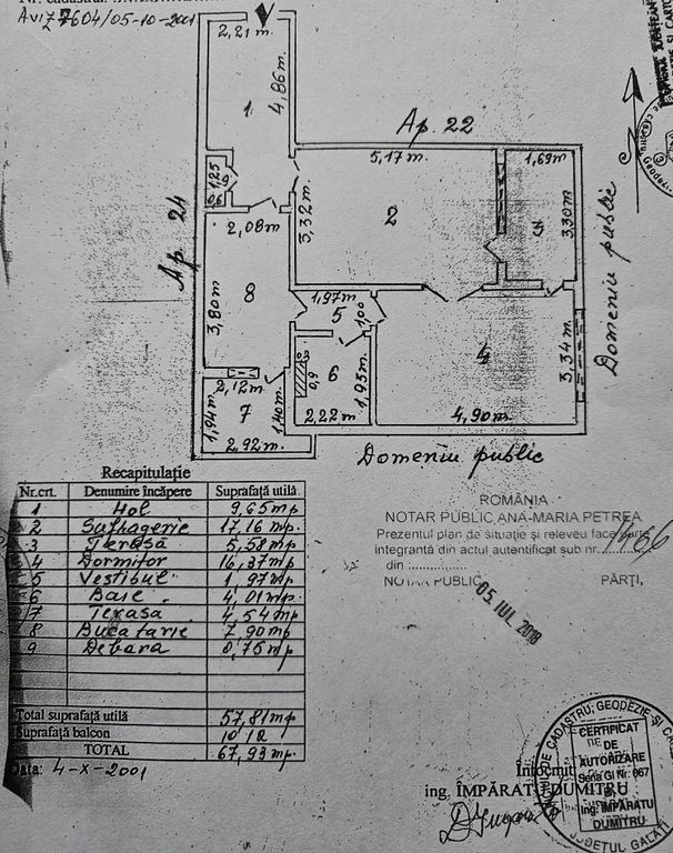 ???? Apartament cu suflet, lângă Grădina Publică – 2 camere spațioase, 68 m², Galați Cauți un loc unde să te simți cu adevărat acasă? Acest apartament de 2 camere, situat chiar lângă Grădina Publică, îți oferă liniștea, lumina și confortul pe care le meriți. ✨ Spațios și primitor, cu o suprafață de 68 m², locuința este perfectă pentru o familie tânără, un cuplu sau pentru oricine își dorește un colț de relaxare în inima orașului. ???? Zona Grădina Publică – una dintre cele mai frumoase și apreciate zone din Galați – îți oferă tot ce ai nevoie la doar câțiva pași: transport, magazine, școli, restaurante și spații verzi pentru plimbări de seară. ????️ Detalii care fac diferența: Etaj 4/4, vedere frumoasă și lumină naturală din abundență; 2 balcoane închise și integrate, pentru mai mult spațiu și confort; Apartament renovat complet, cu instalație electrică nouă; Centrala termică proprie și geamuri termopan tripan (3 foi, profil 6 camere) – eficiență termică și liniște totală; Parchet din lemn masiv, finisaje calde și elegante; Baie cu geam – aerisire naturală și confort sporit; Se vinde mobilat și utilat complet: frigider, mașină de spălat, plită pe gaz, cuptor electric, 2 televizoare și chiar un pian electric – pentru momente de relaxare și inspirație. ❤️ De ce să alegi acest apartament: Pentru că e un loc cu energie bună, amplasat într-un bloc liniștit, cu vecini prietenoși și atmosferă caldă. E locul în care te poți întoarce cu drag zi de zi, unde diminețile încep cu lumina care intră prin ferestre mari și serile se încheie cu o plimbare în Grădina Publică, aflată la doar câteva minute distanță. ???? Contact: Silvia – 0741 182 377 Nu rata șansa de a te muta într-un apartament care nu oferă doar un spațiu, ci un stil de viață frumos și echilibrat!