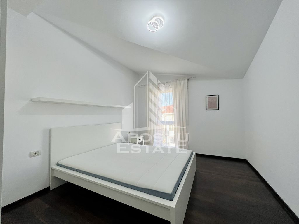 Apostu Estate va propune spre inchiriere un apartament modern si complet mobilat, cu 3 camere, situat in Giroc – una dintre cele mai dezvoltate si cautate zone rezidentiale de langa Timisoara. Proprietatea se afla intr-o locatie excelenta, cu acces facil catre punctele comerciale si de interes major. Caracteristici principale: - Suprafata utila: 80 mp + terasa de 35mp -Situat la ultimul etaj Compartimentare eficienta: - Hol de acces spatios - Bucatarie inchisa complet mobilata si utilata - Living luminos si aerisit( se mobileaza la cerere,inclus in pretul chiriei) - 2 dormitoare - o baie cu cada si geam pentru ventilatie naturala -baie de serviciu - Terasa generoasa – ideala pentru relaxare Dotari si beneficii: - Complet mobilat si utilat modern - Centrala termica proprie - Aer conditionat - Doua locuri de parcare incluse in pret - Spatii de depozitare optim organizate - Disponibil imediat Conditii de inchiriere: - Disponibil imediat - Garantie: 1 luna (650 euro) - Contract minim 12 luni Va asteptam cu drag la o vizionare! ID intern:CP2782815!