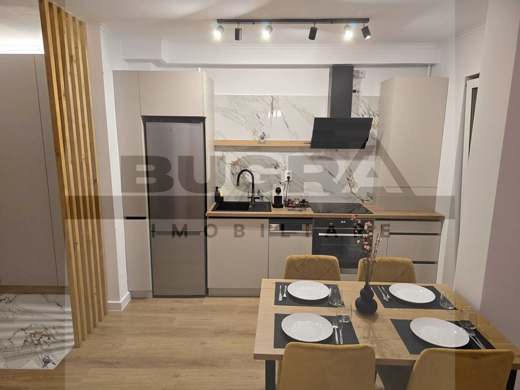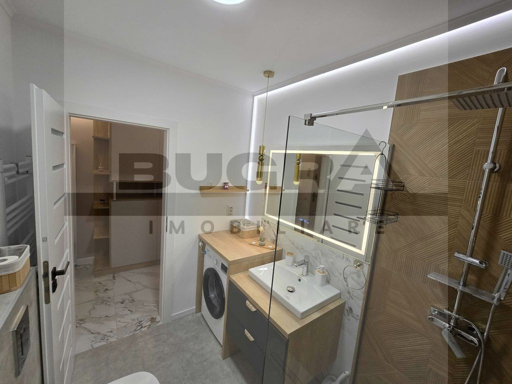 Bugra Imobiliare vă oferă spre închiriere un apartament cu 2 camere, situat în cartierul Iris, în zona Bulevardul Muncii. Apartamentul se află la etajul 1 al unui imobil nou, modern, cu 4 niveluri și dotat cu lift. Compartimentarea este semidecomandată, fiind organizată astfel: dormitor, living cu bucătărie open-space și o terasă. Se închiriază complet mobilat și utilat modern, beneficiind de încălzire în pardoseală, aer condiționat, sistem de iluminat smart, asistent Alexa Se poate închiria și loc de parcare, contra cost. Disponibil imediat. Vă așteptăm la vizionare!