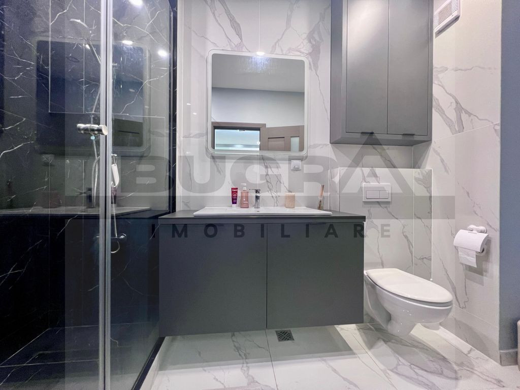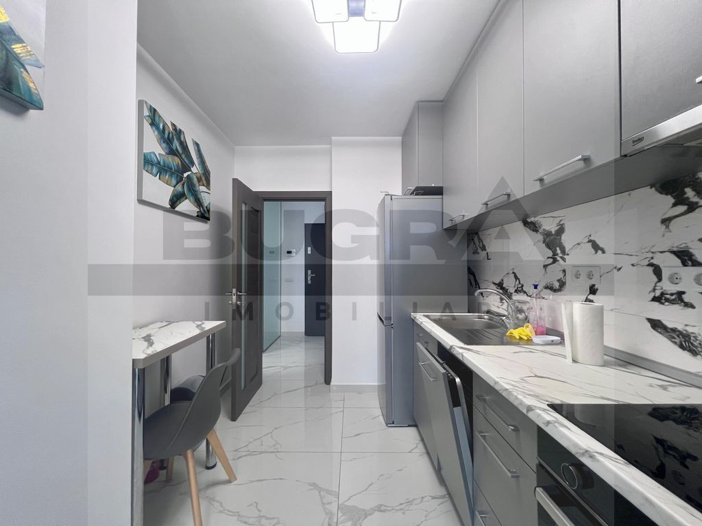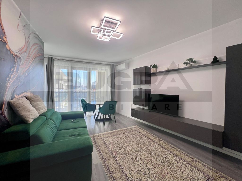 BUGRA IMOBILIARE vă oferă spre închiriere un apartament aflat la prima închiriere, situat în zona centrală a orașului Cluj-Napoca, în apropierea clădirii The Office! ✨ Apartamentul se află la etajul 6 al unui imobil modern cu 7 niveluri și dispune de o suprafață utilă de 56 mp. ???? Compartimentare semidecomandată, practică și modernă Living, dormitor, bucatarie, hol, baie si o terasa generoasa cu vedere spre curtea interioara a ansamblului Încălzirea se realizează prin centrala de imobil, cu distribuție prin pardoseala. Apartamentul se oferă spre închiriere complet mobilat și utilat, gata pentru a fi locuit imediat. ????✨ Facilități ???? Balcon ????Loc de parcare subteran inclus în prețul afișat ???? Disponibil din Octombrie ???? Pentru mai multe detalii sau pentru stabilirea unei vizionări, nu ezitați să ne contactați! ????