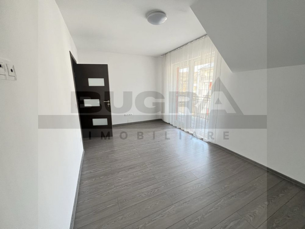 Bugra Imobiliare va ofera spre vanzare, un apartament de 2 camere, situat in Baciu, zona Restaurant Regal, intr-un imobil nou, construit in 2022. Apartamentul este pozitionat la mansarda unui imobil cu 3 niveluri si dispune de o suprafata utuila de 57mp. Compartimentarea este una semidecomandata dispusa dintr-un dormitor, living cu bucatarie de tip open space, baie hol si un balcon. Incalzirea se realizeaza prin centrala termica proprie cu distributia prin pardoseala. In pretul afisat este inclus si un loc de parcare in subteran. Se vinde la stadiul de partial mobilat conform pozelor atasate. Pentru mai multe detalii nu ezitati sa ne contactati!