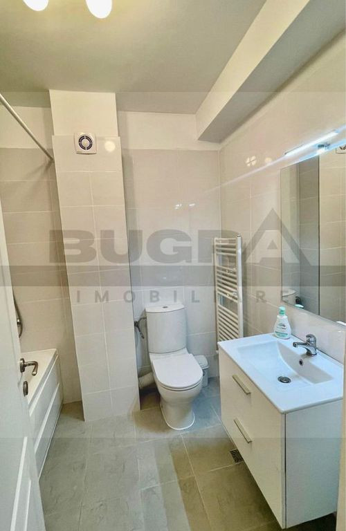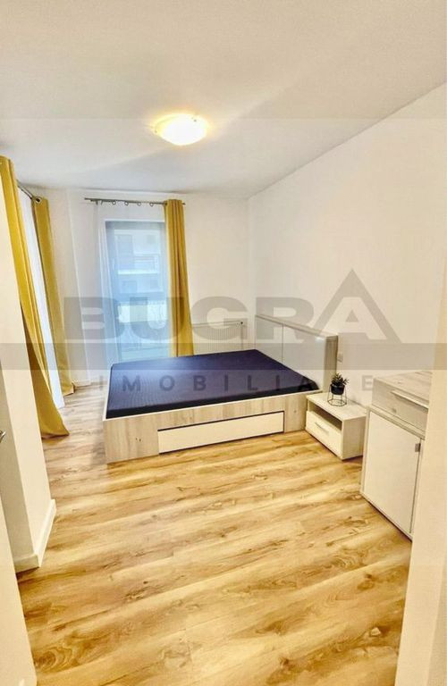Bugra Imobiliare vă oferă spre închiriere apartament de lux cu 2 camere în ansamblul rezidențial Bella Vista – zona Bună Ziua Vă propunem spre închiriere un apartament modern, complet mobilat și utilat, situat într-un ansamblu rezidențial din cartierul Bună Ziua. ???? Etaj 1 din 4 ???? Suprafață utilă: 61,8 mp ☀️ Orientare estică Compartimentare: Living spațios, Bucătărie open-space, Dining, Dormitor generos, Baie modernă complet utilată, Două holuri, Balcon generos (cu ieșire din toate camerele) Apartamentul beneficiază de suprafață vitrată mare, geamuri termopan de calitate, centrală termică proprie și este finisat modern, mobilat și utilat complet cu electrocasnice și dotări de ultimă generație. ???? Imobilul dispune de: Lift Parcare subterană Spații verzi Spațiu de joacă Terasă comună panoramică de 160 mp (ideală pentru relaxare sau evenimente în sezonul cald) Generator propriu ???? Ansamblul este situat în apropierea mai multor puncte comerciale precum Lidl Romania, Banca Transilvania, Mega Image, Leroy Merlin Romania, precum și stații de autobuz la aproximativ 50 m. ???? Apartamentul beneficiază de un loc de parcare subteran inclus. Pentru detalii suplimentare și programarea unei vizionări, vă stăm cu drag la dispoziție.