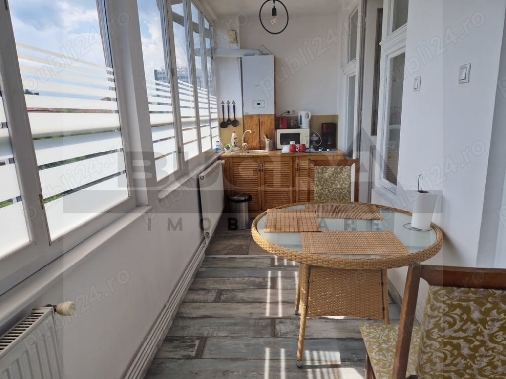 Bugra Imobiliare va ofera spre inchiriere un apartament de 2 camere, mobilat si utilat modern, cu o suprafata utila de 63mp, situat la etajul 1 al unei case in zona Centrala a Clujului, imobil cu locatari linistiti, ideal persoanelor care isi doresc intimitate,liniste si confort. Apartamentul are o compartimentare practica, gandita astfel: dormitor matrimonial, living, bucatarie, baie. Imobilul se afla la doar 2 minute de mers pe jos fata de Parcul Central Cluj Napoca, dispune in apropierea sa de mijloace de transport in comun, supermarketuri, cafenele, restaurante aferente zonei. Disponibil imediat, va asteptam la vizionare!