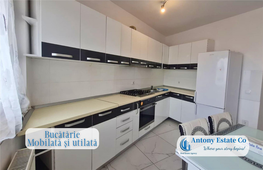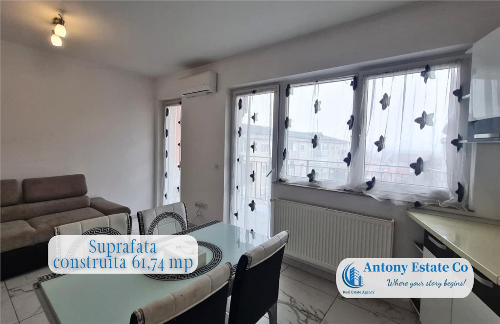 Va propunem spre vanzare un apartament cu 2 camere - Open Space, Etajul 4 din 6, complet mobilat si utilat, situat in cartierul Nufarul pe strada Apateului - Oradea. Imobilul se afla intr-un bloc de apartamente cu 6 etaje, fiind situat la etajul 4 acestuia. Blocul fiind dotat cu lift. Detine o suprafata totala de 61,74 msup2; construiti, din care suprafata utila este de 44,28 msup2; 8,97 msup2; balcon. Locuinta este compusa astfel: - 1 Living Room; - 1 Dormitor matrimonial; - 1 Bucatarie; - 1 Balcon deschis; - 1 Vestibul. Icirc;n apropierea acestui imobil se gasesc: loc de joaca pentru copii, statii de autobuz si tramvai, Gradinite, Scoli, Restaurante, Hoteluri, acces facil spre centura orasului. Scara blocului este dotata cu interfon. Confortul termic al apartamentului este realizat de la reteaua edilitara de termoficare, cu calorifere, astfel costurile cu intretinerea sunt mici. Imobilul dispune de un aparat aer conditionat. Informatiile tehnice au caracter orientativ, acestea fiind preluate de la proprietar. Pentru mai multe detalii si vizionari, ne puteti contacta telefonic la numarul din anunt. Oferim clientilor nostri urmatoarele servicii: - Consultanta financiara si juridica; - Consultanta si asistenta in obtinerea creditelor ipotecar-imobiliare; - Echipa de meseriasi (zugrav, instalator, electrician), totul sub contract legal si la termen. - Design interior, asigurari si evaluari proprietati. Antony Estate CO - Where your story begins!