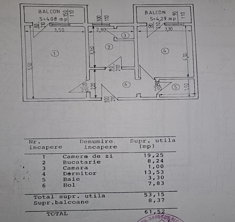 Vindem apartament de 2 camere in suprafata totala de 63mp, fara balcoane in jur de 54mp. proprietatea este situata la etajul 3 din 4 are 2 balcoane inchise in termopan parchet din lemn masiv in camere baie bucatarie gresie si faianta este un apartament locuibil, curat , uscat si bine ingrijit Pretul este de 79.000 euro