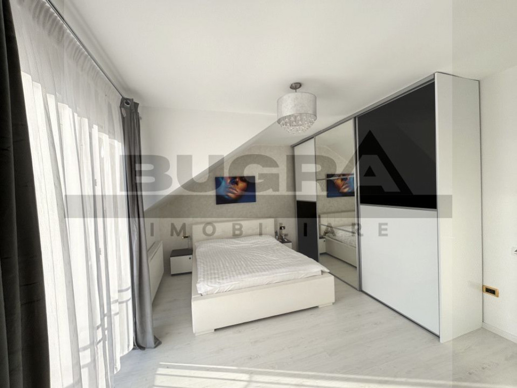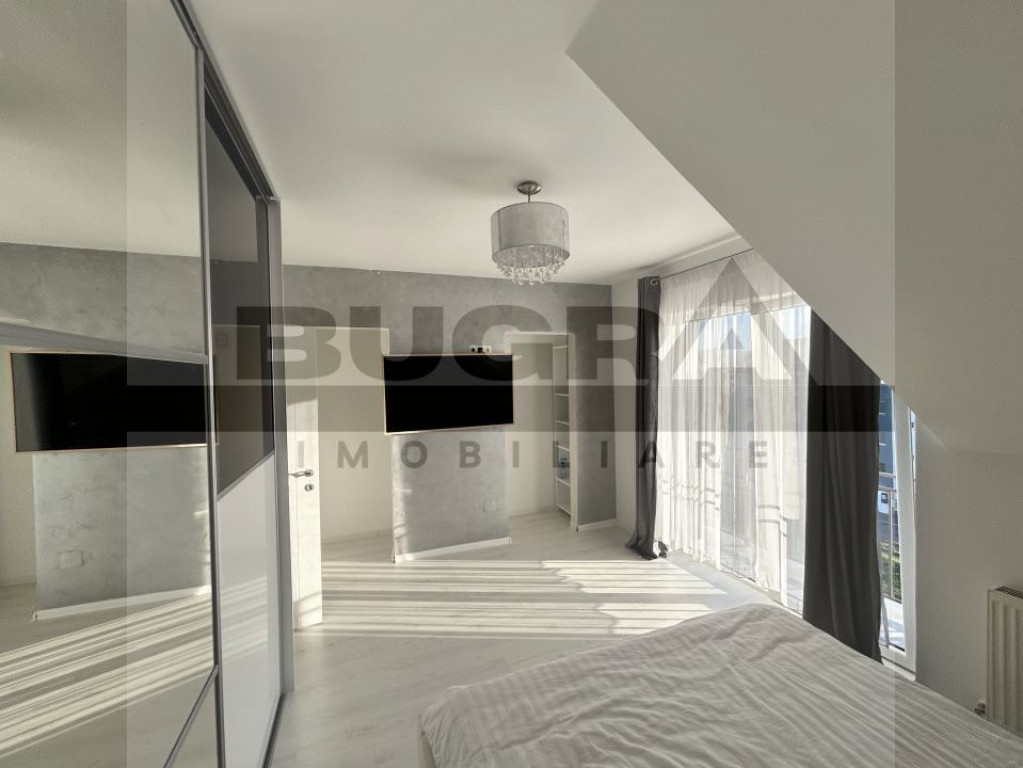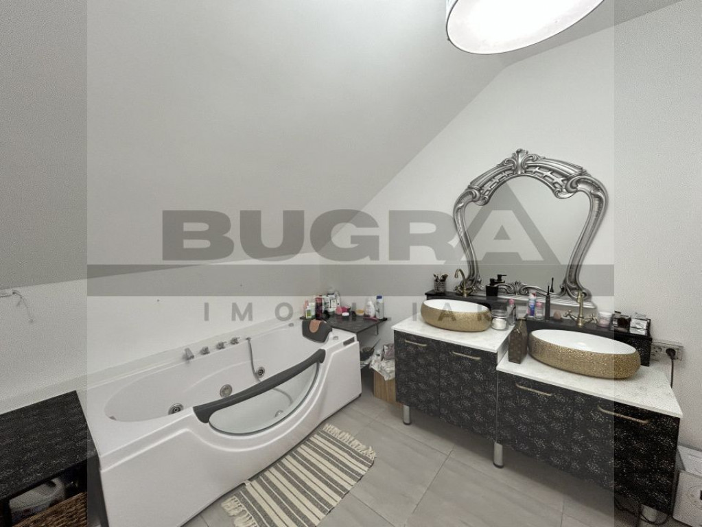 ???? Bugra Imobiliare vă propune spre vânzare un apartament spațios cu 3 camere, situat la mansardă, perfect adaptat nevoilor unei familii, într-o zonă liniștită și aerisită din Florești. ✅ Avantaje principale • Suprafață utilă generoasă: 77,84 mp • Compartimentare practică: zona de zi separată de cele de odihnă • Terasă de 21 mp – ideală pentru relaxare, activități în aer liber sau spațiu de joacă pentru copii • Balcoane proprii pentru fiecare dormitor, care oferă lumină naturală și o ventilație optimă • Finisaje moderne, mobilier inclus și centrală proprie, pentru confort și eficiență energetică ????️ Compartimentare inteligentă • Hol de intrare cu spațiu pentru depozitare • Living luminos cu bucătărie open-space – zonă ideală pentru întreaga familie • Dormitor matrimonial cu acces direct pe balcon • Dormitor secundar spațios, ideal pentru copii sau birou • Dressing generos, cu posibilitate de amenajare ca a doua baie • Baie complet echipată, cu finisaje moderne și lumină ambientală ???? Spații exterioare pentru relaxare • Terasă largă – loc ideal pentru mese în aer liber, plante sau activități recreative • Două balcoane deschise, accesibile din dormitoare – un plus de intimitate și confort ???? Despre locație • Apartamentul este situat la etajul 4 (mansardă) al unui imobil nou, construit în 2019 (regim P+3+M) • Zonă liniștită din Florești, ferită de agitația urbană • Acces facil către Cluj-Napoca, cu stații de transport public în apropiere • În apropiere: grădinițe, locuri de joacă și spații verzi ???? Facilități suplimentare • Posibilitate de achiziție a unui loc de parcare exterior contra sumei de 5000 euro • Boxă / spațiu de depozitare disponibil ???? Pentru mai multe informații sau pentru programarea unei vizionări, contactați Bugra Imobiliare