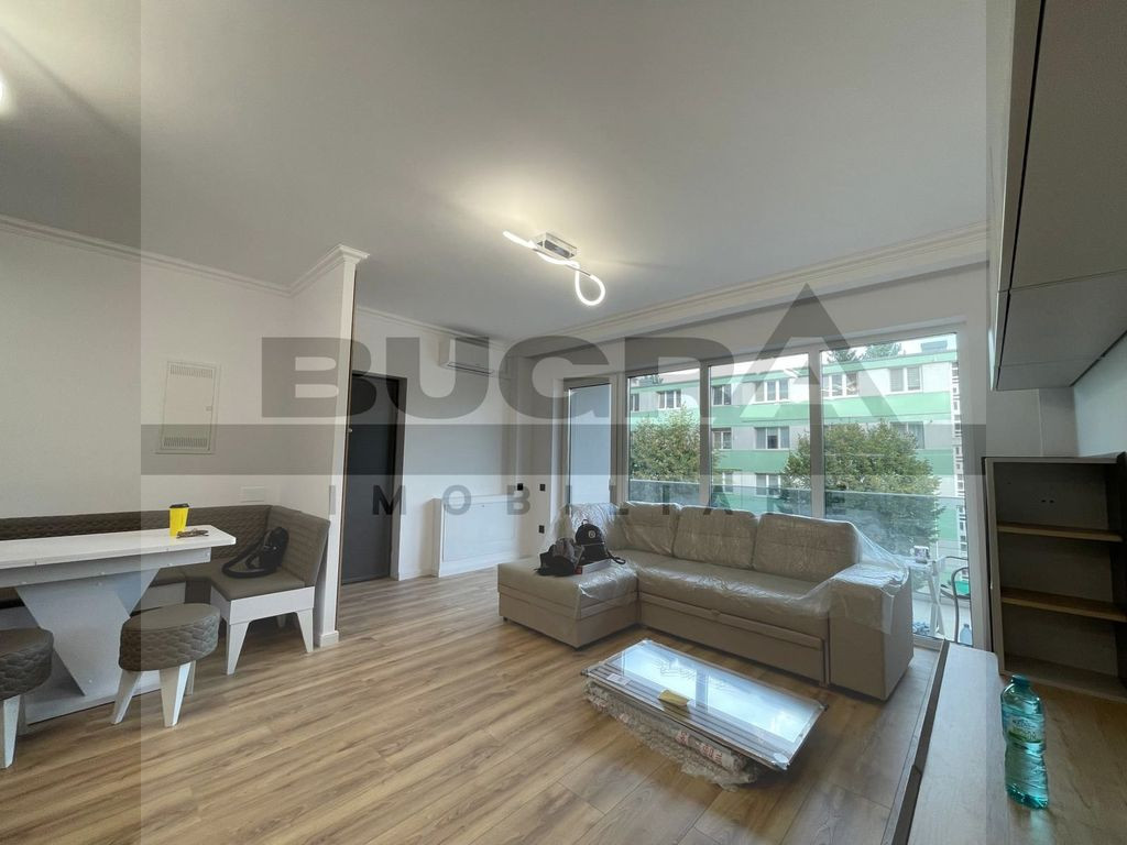 Iti propunem spre inchiriere un apartament mobilat si utilat modern de 3 camere, cu o suprafata utila de 60mp, dotat cu incalzire in pardoseala, aer conditionat, masina de spalat vase, cu finisaje de inalta calitate, toate gandite spre a-ti oferi sederea confortabila pe termen lung de mult asteptata! Apartamentul are o compartimentare moderna, gandita astfel: 2 dormitoare matriomoniale, mari, fiecare cu iesire la balcon, apartamentul avand 2 balcoane, living&bucatarie dotat cu mobilier si electrocasnice de ultima generatie, baie complet utilata, totul este nou, aflat la prima inchiriere. Imobil modern bine termo-ziolat, finalizat in 2025, se afla in zona semi-centrala a orasului Cluj Napoca, dispune in apropierea sa de diverse mijloace de transport in comun, magazine alimentare, banci, farmacii, sali de ftiness aferente zonei. Apartamentul ideal pentru un cuplu, o familie sau un grup de persoane. Apartamentul este complet dotat cu perdele + decoratiuni interioare care nu sunt vizibile in poze. Exsita posibilitatea inchirierii unui loc de parcare contra-cost (50 euro) Disponibil imediat, va asteptam la vizionare!