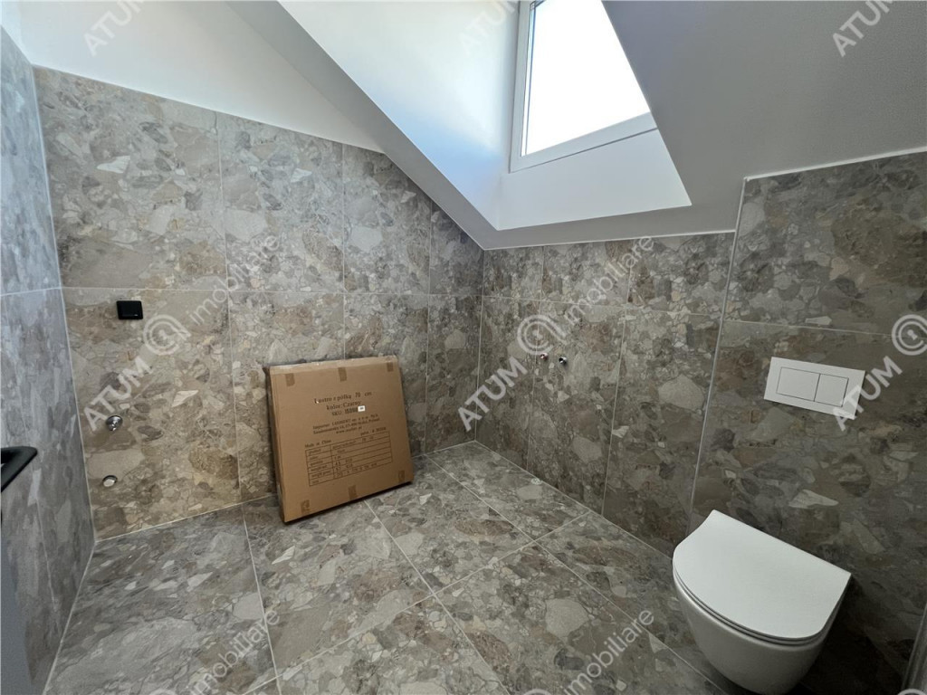 De vanzare in Sibiu, zona Turnisor apartament cu 3 camere si balcon, in suprafata totala de 75 mp, situat la etajul 2 al unui bloc modern tip vila cu regim redus de inaltime Parter 2 Etaj, cu doar 2 apartamente pe palier ( 6 apartamente in total ) unde fiecare locatar dispune de 2 locuri de parcare, acces securizat cu bariera si zona verde generoasa. Apartamentul are suprafata utila de 58.34 mp, fiind compus din : camera de zi tip open space cu bucataria de 27.42 mp care pot fi separate, 2 dormitoare unde cel matrimonial are suprafata de 12,55 mp iar cel destinat copilului, oaspetilor sau poate fi amenajt chiar un birou de 11.00 mp, baia de 5,54 mp dotata cu geam de aerisire si un hol de 1.56 mp. Separat de suprafata utila acesta detine si un balcon de aproximativ 5.00 mp in care accesul se face din cele 2 dormitoare. Parcarea se realizeaza pe cele 2 locuri proprii de parcare delimitate si inscriptionate aflate in fata imobilului si vizibile din apartament. Pe langa parcarea privata a complexului, in fata acestuia sunt numeroase locuri de parcare publice. Apartamentul se preda cu dotari standard precum: - Aer conditionat cu aparataj montat; - Usa de metal la intrarea in apartament placata cu panou MDF; - Pereti tencuiti ( tencuieli pe baza de var-ciment) si doua maini de glet; - Pardoseli amenajate cu sapa autonivelanta semiuscata elicopterizata pregatite pentru parchet-gresie; - Tamplarie PVC marca Salamander cu 7 camere si 3 foi de sticla ( lowe-float-lowe solar ) si glafuri interior-exterior; - Incalzire in pardoseala cu cablaj pentru termostatarea individuala a fiecarei incaperi, centrala termica proprie in condensatie marca Bosch si detector gaz; - Sisteme elecrice din cupru trase prin copex cu tablou general si sigurante pentru consumatorii de putere marca Schneider; - Instalatii pentru curentii slabi, Internet, Telefon, TV; - Racorduri apa-canal in bucatarie si bai; - Racord gaz metan in bucatarie; - Rupere termica intre balcon si placa din profil de 10 cm montat la tamplarie si polistiren extrudat; - Instalatii pentru gaz, curent electric si apa, contorizare individuala si contoare montate. Apartamentul se va preda la stadiul de cheie cu gresie si faianta in bucatarie, gresie si faianta in bai, obiecte sanitare ( cabina de dus/cada, lavoar, vas wc, baterii cada/lavoar ), parchet laminat, usi de interior, corpuri de iluminat. Din punct de vedere structural imboilul este edificat pe structura portanta din beton armat, zidarie din caramida cu grosimea de 30 cm, anvelopata termic cu polistiren de 10 cm si densitatea EPS 80, zugraveli decorative exterior cu vopsea decorativa siliconata, acoperis tip sarpanta cu invelitoare din tigla metalica cu tot sistemul montat ( folie anticondens, vata minerala, parazapezi, jgheaburi si burlane ) Valoarea de achizitie este de 145.000 euro negociabil, acesta poate fi achizitionat si prin accesarea unui credit bancar. ID intern: 2760.