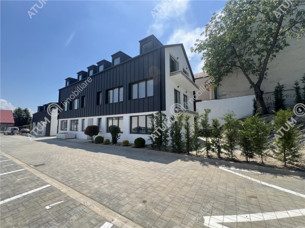 COMISION 0! De vanzare apartament complet finisat la cheie cu 3 camere si balcon, in suprafata totala de 74.60 mp, cu 2 locuri proprii de parcare, pozitionat la etajul 1 al unui imobil constructie noua 2024 aflat in zona Turnisor din Sibiu localizat pe strada Str. Eduard Albert Bieltz. Apartamentul este situat la etajul intermediar 1 al unui complex rezidential nou, intim si modern, constituit din 2 vile cu regim redus de inaltime compuse din Parter Etaj si Parter 2 Etaje, care totalizeaza 8 apartamente ( 2 apartamente pe nivel ) si un spatiu comercial, unde fiecare locatar dispune de 2 locuri de parcare, zona verde generoasa, acces in complex cu bariera. Apartamentul are suprafata utila de 58.34 mp, fiind compus din : camera de zi tip open space cu bucataria de 27.42 mp care pot fi separate, 2 dormitoare unde cel matrimonial are suprafata de 12,55 mp iar cel destinat copilului, oaspetilor sau poate fi amenajt chiar un birou de 11.00 mp, baia de 5,54 mp dotata cu geam de aerisire si un hol de 1.56 mp. Separat de suprafata utila acesta detine si un balcon de aproximativ 5.00 mp in care accesul se face din cele 2 dormitoare. Parcarea se realizeaza pe cele 2 locuri proprii de parcare delimitate si inscriptionate aflate in fata imobilului si vizibile din apartament. Pe langa parcarea privata a complexului, in fata acestuia sunt numeroase locuri de parcare publice. Apartamentul se preda cu dotari standard precum: - Aer conditionat cu aparataj montat; - Usa de metal la intrarea in apartament placata cu panou MDF; - Pereti tencuiti ( tencuieli pe baza de var-ciment) si doua maini de glet; - Pardoseli amenajate cu sapa autonivelanta semiuscata elicopterizata pregatite pentru parchet-gresie; - Tamplarie PVC marca Salamander cu 7 camere si 3 foi de sticla ( lowe-float-lowe solar ) si glafuri interior-exterior; - Incalzire in pardoseala cu cablaj pentru termostatarea individuala a fiecarei incaperi, centrala termica proprie in condensatie marca Bosch si detector gaz; - Sisteme elecrice din cupru trase prin copex cu tablou general si sigurante pentru consumatorii de putere marca Schneider; - Instalatii pentru curentii slabi, Internet, Telefon, TV; - Racorduri apa-canal in bucatarie si bai; - Racord gaz metan in bucatarie; - Rupere termica intre balcon si placa din profil de 10 cm montat la tamplarie si polistiren extrudat; - Instalatii pentru gaz, curent electric si apa, contorizare individuala si contoare montate. Apartamentul se va preda la stadiul de cheie cu gresie si faianta icirc;n bucatarie, gresie si faianta icirc;n bai, obiecte sanitare ( cabina de dus/cada, lavoar, vas wc, baterii cada/lavoar ), parchet laminat, usi de interior, corpuri de iluminat. Din punct de vedere structural imboilul este edificat pe structura portanta din beton armat, zidarie din caramida cu grosimea de 30 cm, anvelopata termic cu polistiren de 10 cm si densitatea EPS 80, zugraveli decorative exterior cu vopsea decorativa siliconata, acoperis tip sarpanta cu invelitoare din tigla metalica cu tot sistemul montat ( folie, vata minerala, placari cu gips carton, parazapezi, jgheaburi si burlane ) Valoarea de achizitie este de 143.000 euro negociabil, acesta poate fi achizitionat si prin accesarea unui credit bancar. ID intern: 2754.