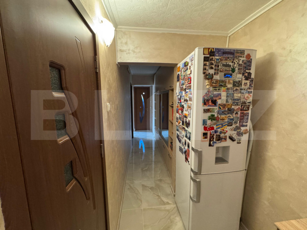 Blitz vă propune spre vânzare un apartament cu 3 camere, decomandat, situat în cartierul 1 Mai, într-o zonă liniștită și accesibilă, în imediata vecinătate a Școlii Gimnaziale „Gheorghe Bibescu”. Apartamentul se află la etajul 4 din 4 al unui bloc construit în anul 1985, cu acoperișul complet refăcut de asociația de proprietari acum 2 ani (cu garanție). Caracteristici principale: Suprafață utilă: 64,23 mp Suprafață totală: 68,66 mp Compartimentare: decomandat Etaj: 4/4 An construcție: 1985 Apartamentul se vinde complet mobilat și parțial utilat Renovări și dotări recente: Instalație electrică nouă (schimbată integral, inclusiv din beton) Centrală termică pe gaz Aer condiționat Acoperiș renovat cu garanție valabilă Locuința este pregătită pentru mutare imediată și nu necesită investiții suplimentare. Se potrivește perfect atât pentru locuit, cât și ca investiție. Facilități în zonă: Școli și grădinițe (inclusiv Școala „Gheorghe Bibescu”) Supermarketuri și magazine Acces rapid către Parcul Nicolae Romanescu Transport public în apropiere Preț: negociabil Pentru mai multe detalii sau programarea unei vizionări, nu ezitați să ne contactați! Cod ofertă / ID BLITZ: P148261 Id intern: P148261
