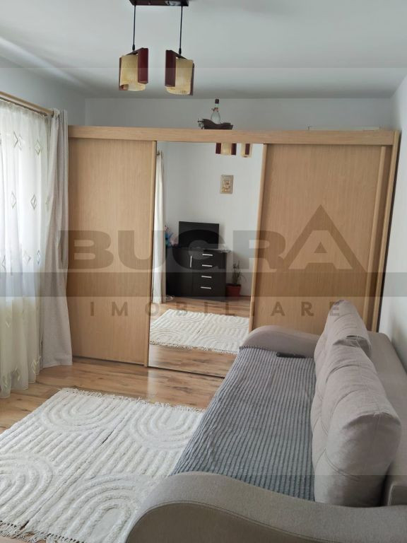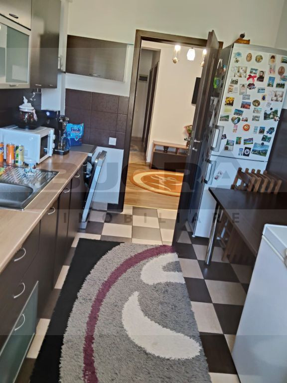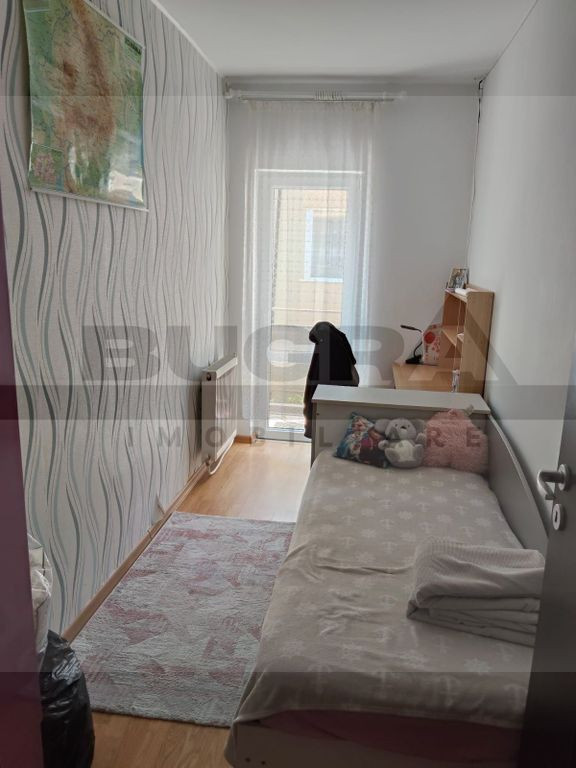 Bugra Imobiliare va ofera spre vanzare un apartament de 3 camere, complet mobilatsi utilat, cu o suprafata utila de 63mp, predat la cheie, gata pentru mutare si sedere confortabila pe termen lung! Apartamentul are o compartimentare practica, gandita astfel: 3 camere separate, bucatarie inchisa, baie, hol + balcon de 15mp. Imobilul se afla intr-o zona cheie al comunei Apahida, la doar 10 minute de Primaria Apahida si la doar cateva minute fata de mijloacele de transport de comun, supermarketurile, bancile, farmaciile aferente zonei. In pretul afisat este inclus si un loc de parcare propriu. Disponibil imediat, va asteptam la vizionare!