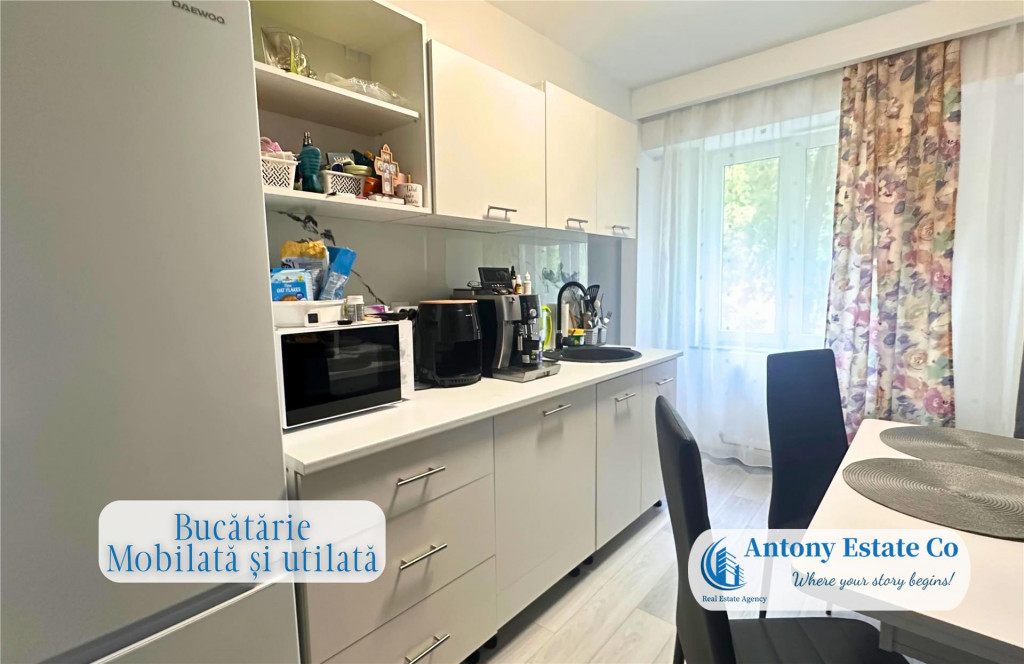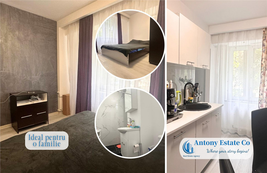 #BC# Va propunem spre vanzare un apartament cu 3 camere - decomandat, Etajul: parter din 4, tip D, complet mobilat si utilat, situat in zona Rogerius - Oradea. Imobilul se afla intr-un bloc de apartamente cu 4 etaje, fiind situat la parterul acestuia. Blocul fiind dotat cu acoperis. Detine o suprafata totala de 86 msup2; construiti, din care suprafata utila este de 69 msup2;. Locuinta este compusa astfel: - 1 Living Room; - 2 Dormitoare; - 1 Bucatarie; - 1 Baie cu cabina de dus si 1 baie de serviciu; - 1 Vestibul. Icirc;n apropierea acestui imobil se gasesc: loc de joaca pentru copii, statii de autobuz si tramvai, Gradinite, Scoli, Restaurante, Hoteluri, acces facil spre centrul(centura) orasului. Scara blocului este dotata cu interfon. Confortul termic al apartamentului este realizat de la reteaua edilitara de termoficare , astfel costurile cu intretinerea sunt mici. Informatiile tehnice au caracter orientativ, acestea fiind preluate de la proprietar. Pentru mai multe detalii si vizionari, ne puteti contacta telefonic la numarul din anunt. Oferim clientilor nostri urmatoarele servicii: - Consultanta financiara si juridica; - Consultanta si asistenta in obtinerea creditelor ipotecar-imobiliare; - Echipa de meseriasi (zugrav, instalator, electrician), totul sub contract legal si la termen. - Design interior, asigurari si evaluari proprietati. Antony Estate CO - Where your story begins!