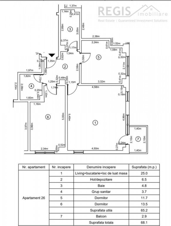 Suprafața utilă 65 m²