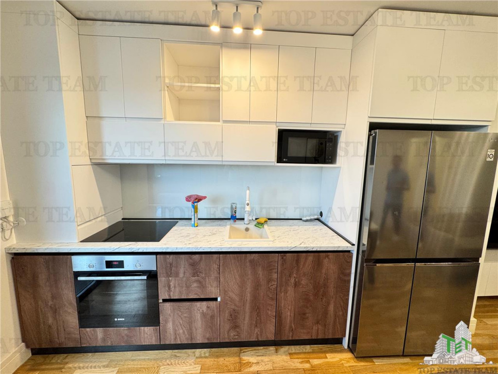Va propunem spre achizitie un apartament modern situat intr-un complex rezidential cu acces facil din Bulevardul Barbu Vacarescu, Calea Floreasca, Stefan cel Mare si Lacul Tei ndash; una dintre cele mai cautate zone din Bucuresti. Caracteristici generale: Suprafata utila: 56.5 mp Suprafata construita: 60 mp Etaj: 7 din 10 Compartimentare: semidecomandat Logie: 3.07 mp Compartimentare interioara: Living generos cu bucatarie open space Dormitor Baie Hol de acces Logie inchisa Finisaje si dotari: Stare interioara: buna Parchet, gresie, faianta Ferestre tripan cu profil din aluminiu Usa metalica la intrare, usi interioare din lemn Incalzire in pardoseala, centrala termica Aer conditionat Internet prin cablu si wireless Apometre, contor de gaz Mobilier si electrocasnice: Apartamentul se vinde complet mobilat si utilat, cu mobilier realizat la comanda (custom made), de inalta calitate. Pret de vanzare apartament loc de parcare subteran: 280.000 Euro Pentru mai multe detalii sau pentru a programa o vizionare, va rugam sa ne contactati.