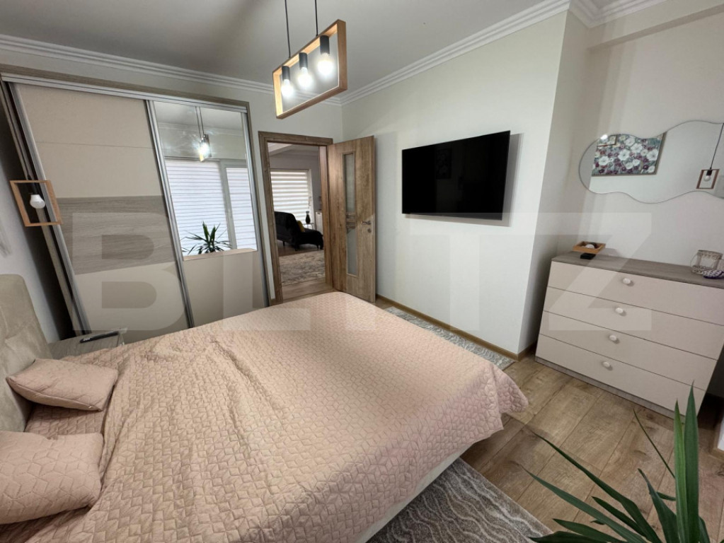 Blitz va propune spre inchiriere un apartament nou, cu facilitati premium, luminos si elegant, 75 mp la parterul unui bloc tip vila nou cu doar 5 apartamente. Este ideal pentru un cuplu care pretuieste confortul si linistea. Apartamentul are iesire directa, fara trepte, in curtea de 3 ari imprejmuita, oferind spațiu deschis si placut pentru a savura o masa sau a petrece timpul in aer liber. In curte este trasa, apa curenta si scurgerea. Dormitoarele au iesire pe balcon, de pe care se poate vedea panorama Mesesului. Sub apartament exista garaj mare si beci incapator cu acces de afara (poarta automatizata) si de pe casa scarii. Locul de parcare rezervat apartamentului din fata blocului este cu iluminare nocturna. Amplasarea blocului permite acces facil catre centrul Zalaului (circa 2 min) sau catre zona industriala de pe centura Zalaului (in jur de 5 min). Apartamentul este oferit complet mobilat și utilat cu electrocasnice noi, avand o bucataria “open space” dotata cu: Cuptor incorporat modern, cuptor cu microunde și plita cu inductie; Frigider “no frost” cu congelator; Masina de spalat vase; Hota retractabila; Aparat de cafea (boabe sau macinata); Toaster / Sandwich maker; Toata vesela necesara pentru pregatitul bucatelor sau luarea mesei. Dotari pentru confort: Aer condiționat; Incalzire in pardoseala pe toata suprafața pentru confort termic optim in sezonul rece; Blocul este construit din caramida si izolat termic, ce asigura un consum minim pentru incalzire sau racire; Smart TV cu diagonala mare in living si in dormitorul matrimonial pentru a urmari in confort maxim un serial preferat sau un meci de fotbal; Masa de birou cu priza conectare la internet si TV trase, pentru a asigura viteza maxima de trafic pentru lucru de la domiciliu; Dressinguri incapatoare si comode cu sertare mari in fiecare dormitor si un alt dressing mare in holul apartamentului pentru depozitarea hainelor; Masina de spalat haine cu uscator incorporata in dressingul de pe hol pentru acces si utilizare comoda; Baia este utilata modern: chiuveta cu sertare, oglinda cu iluminare si dezaburire, uscator de prosoape generos, vas WC si dus. Apartamentul este nou, la prima inchiriere. Pentru mai multe detalii, nu ezita sa ne contactezi! Cod ofertă / ID BLITZ: P155248 Id intern: P155248